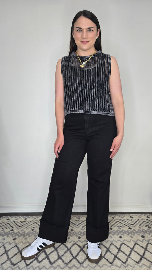 Judy Blue Black Retro Wide Leg High Rise Jeans With Cuff "Taylor"