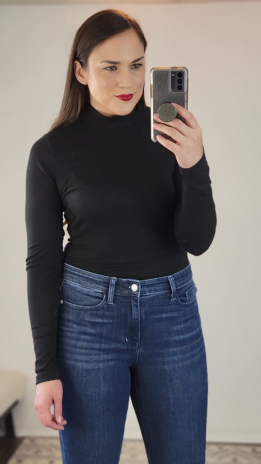 Black Ribbed Basic Mock Neck Long Sleeve Top "Elena"