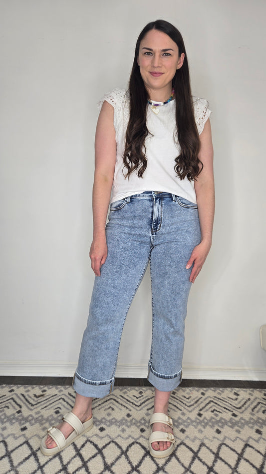 Lovervet Cuffed Ankle Wide Leg High Rise Jeans "Gemma"