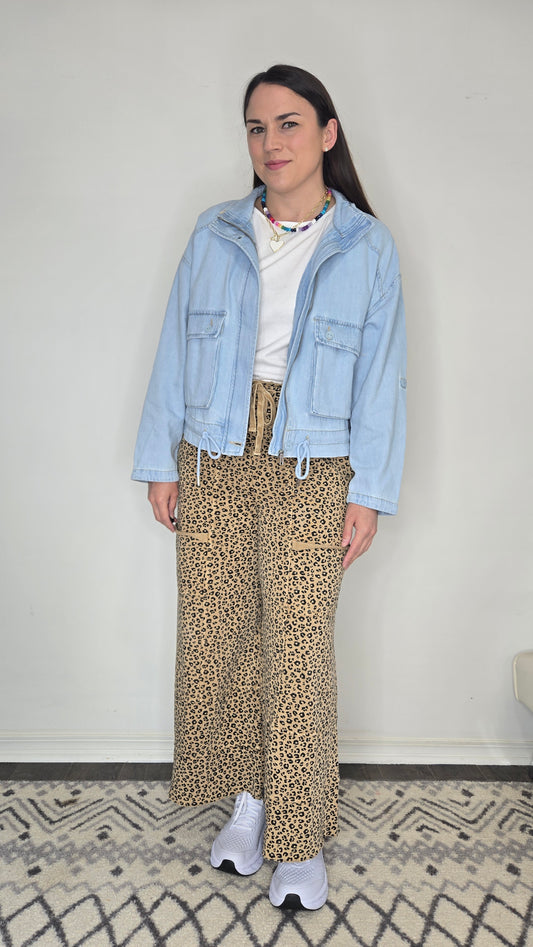 Risen Denim Oversize Cargo Jacket with Pockets and Waist String "Hollis"