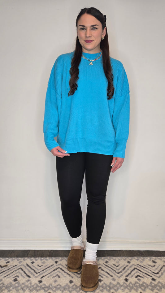Aqua Blue Oversized Essential Knit Sweater "Ivy"