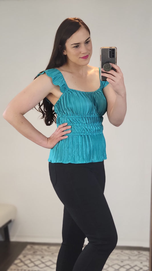 Jade Pleated Satin Square Neck Top "Mona" (S)(L)