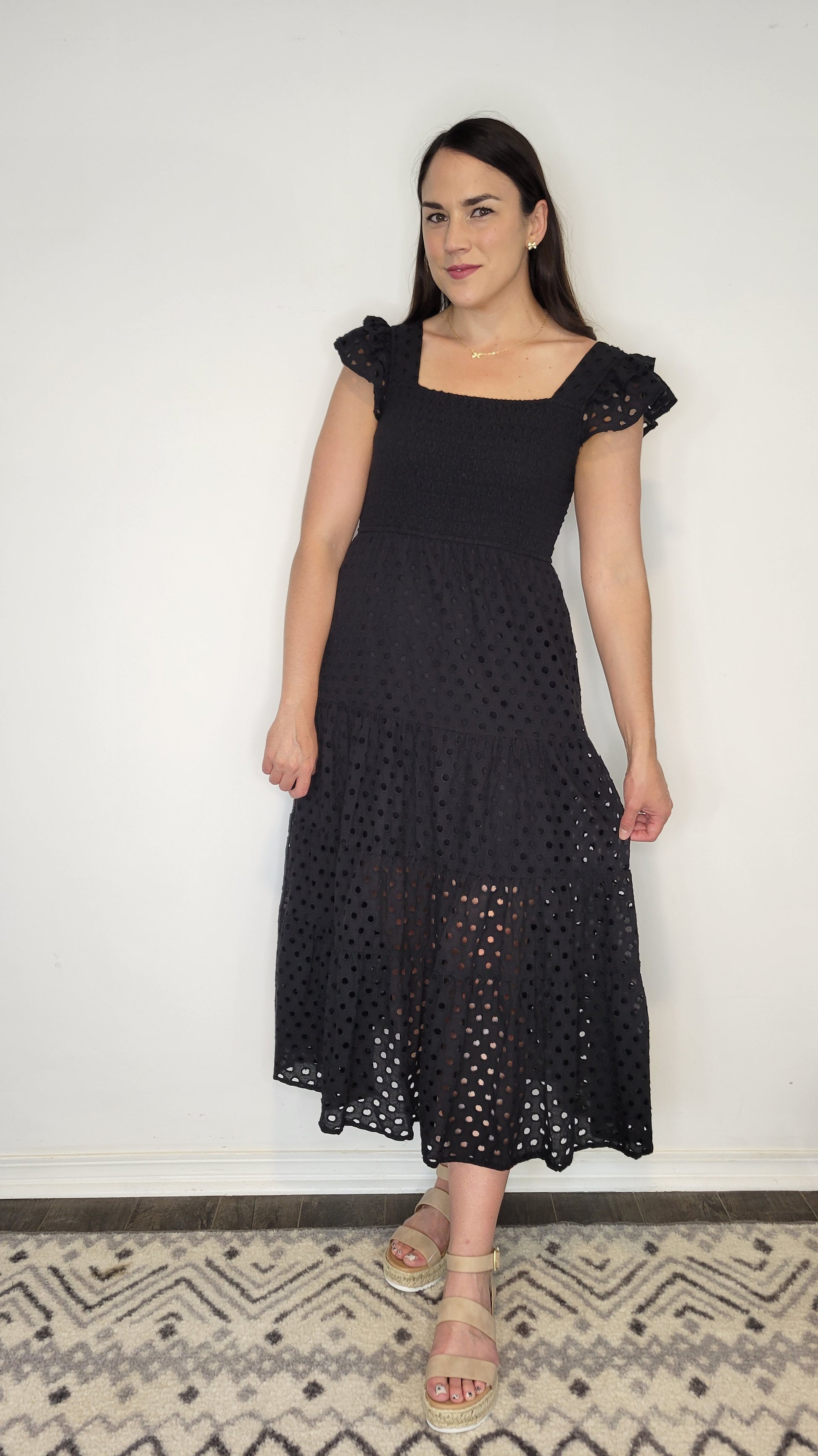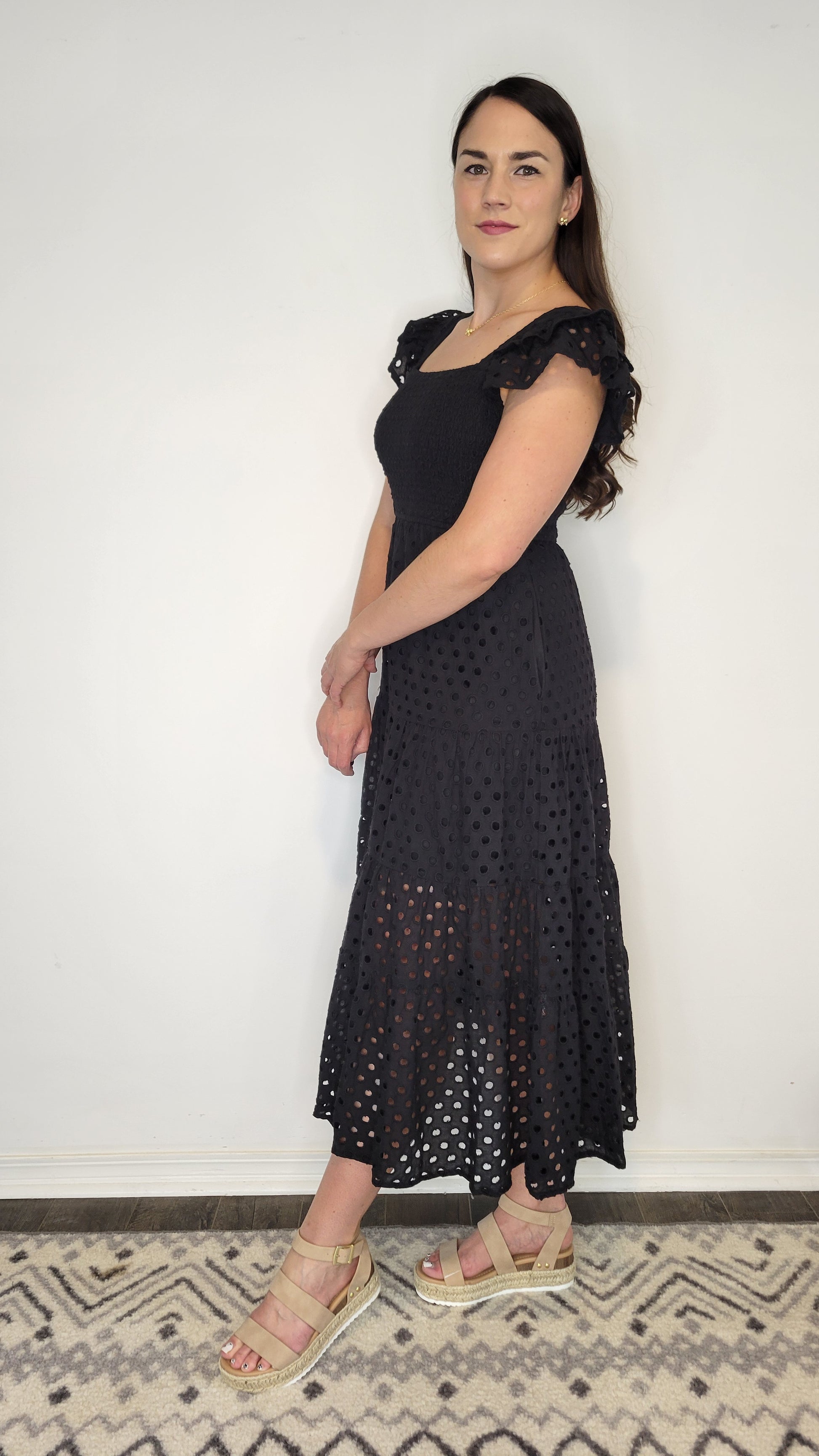 Black Eyelet Midi Dress with Pockets “Everly” (M)