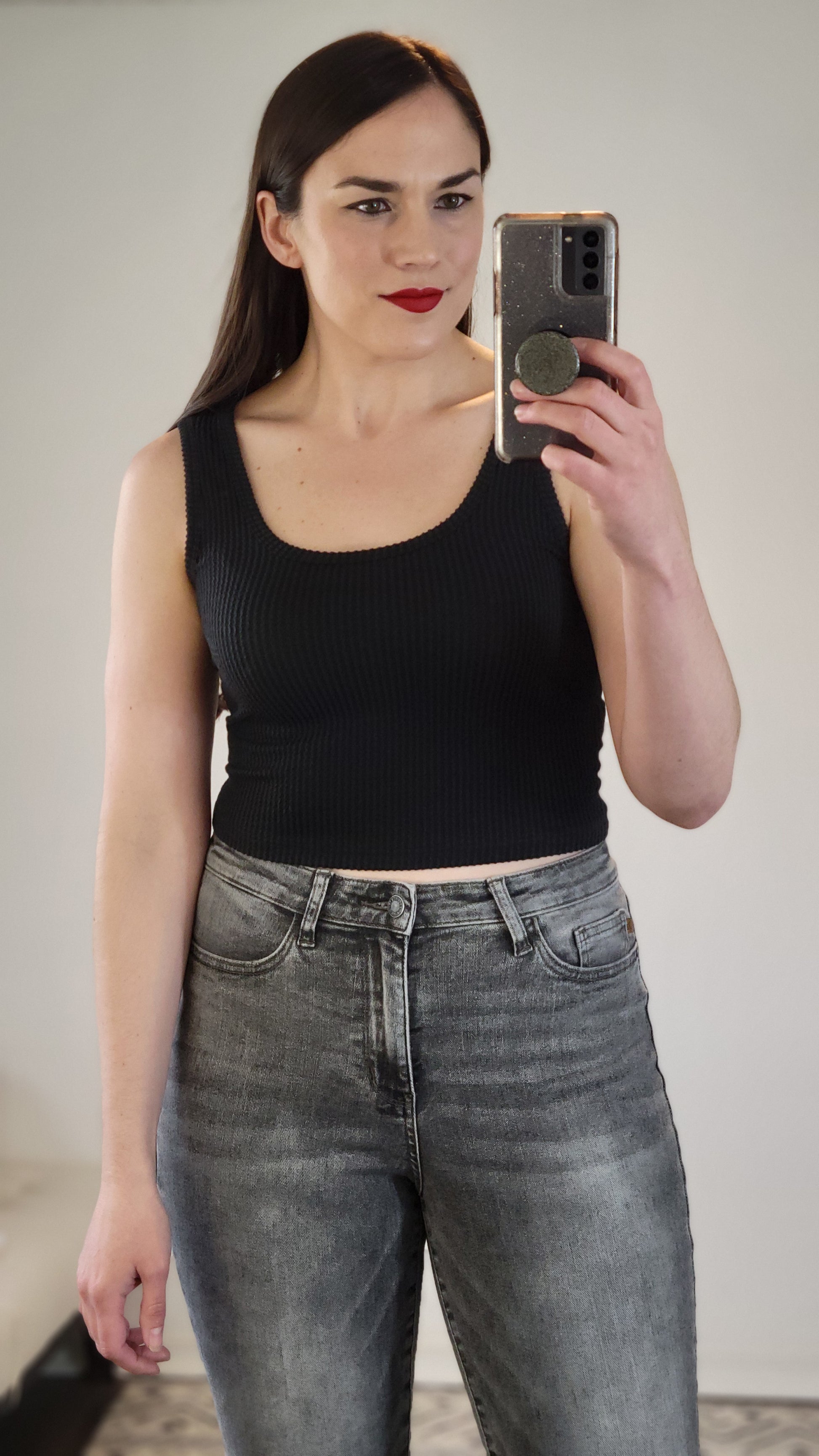 Black Ribbed Scoop Neck Crop Tank Top “Cleo”