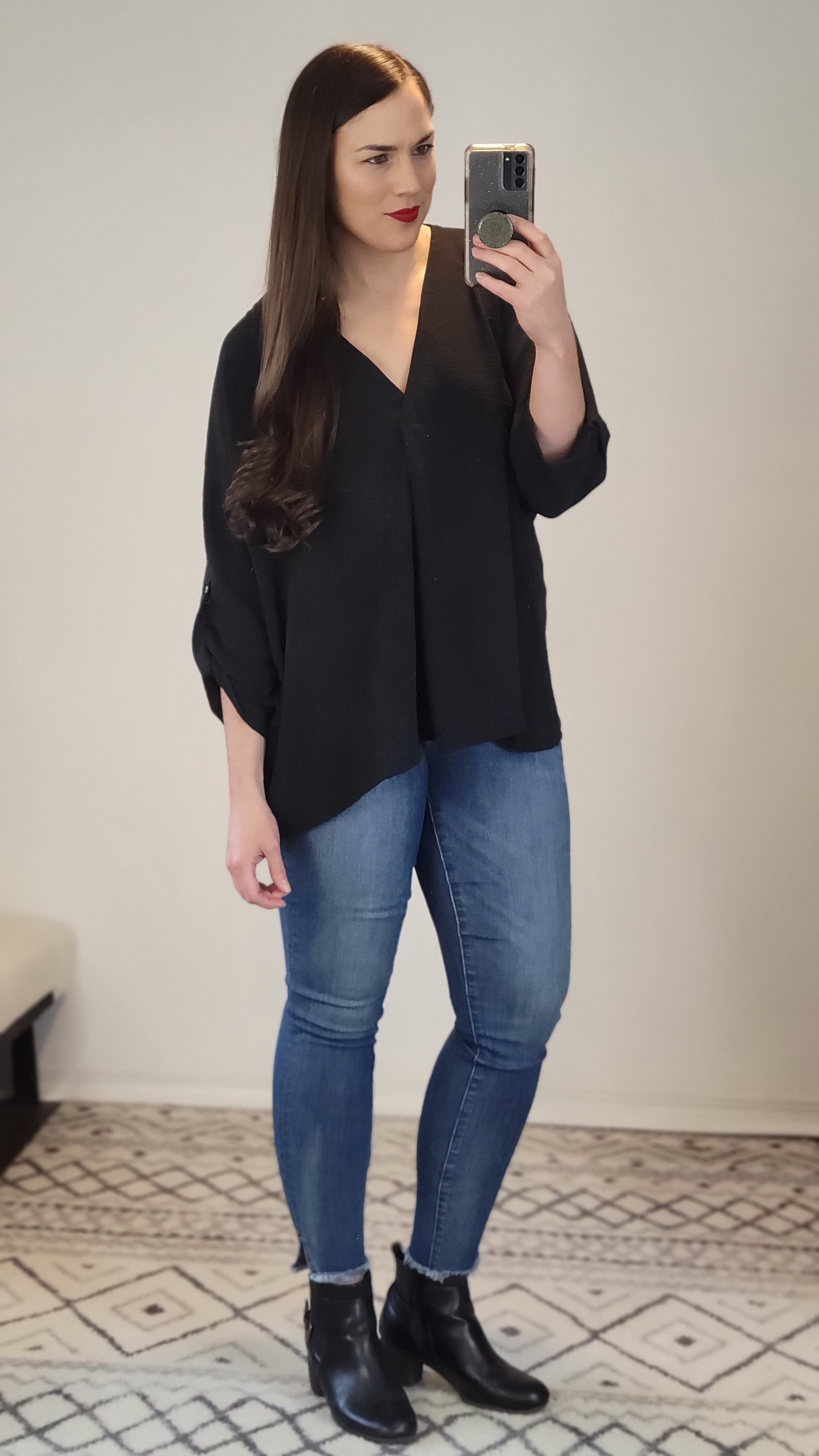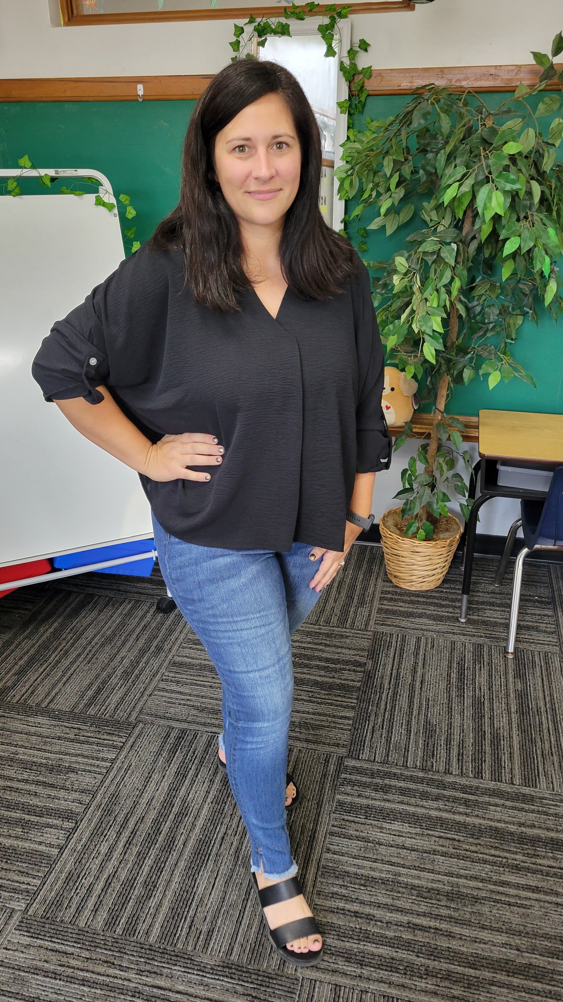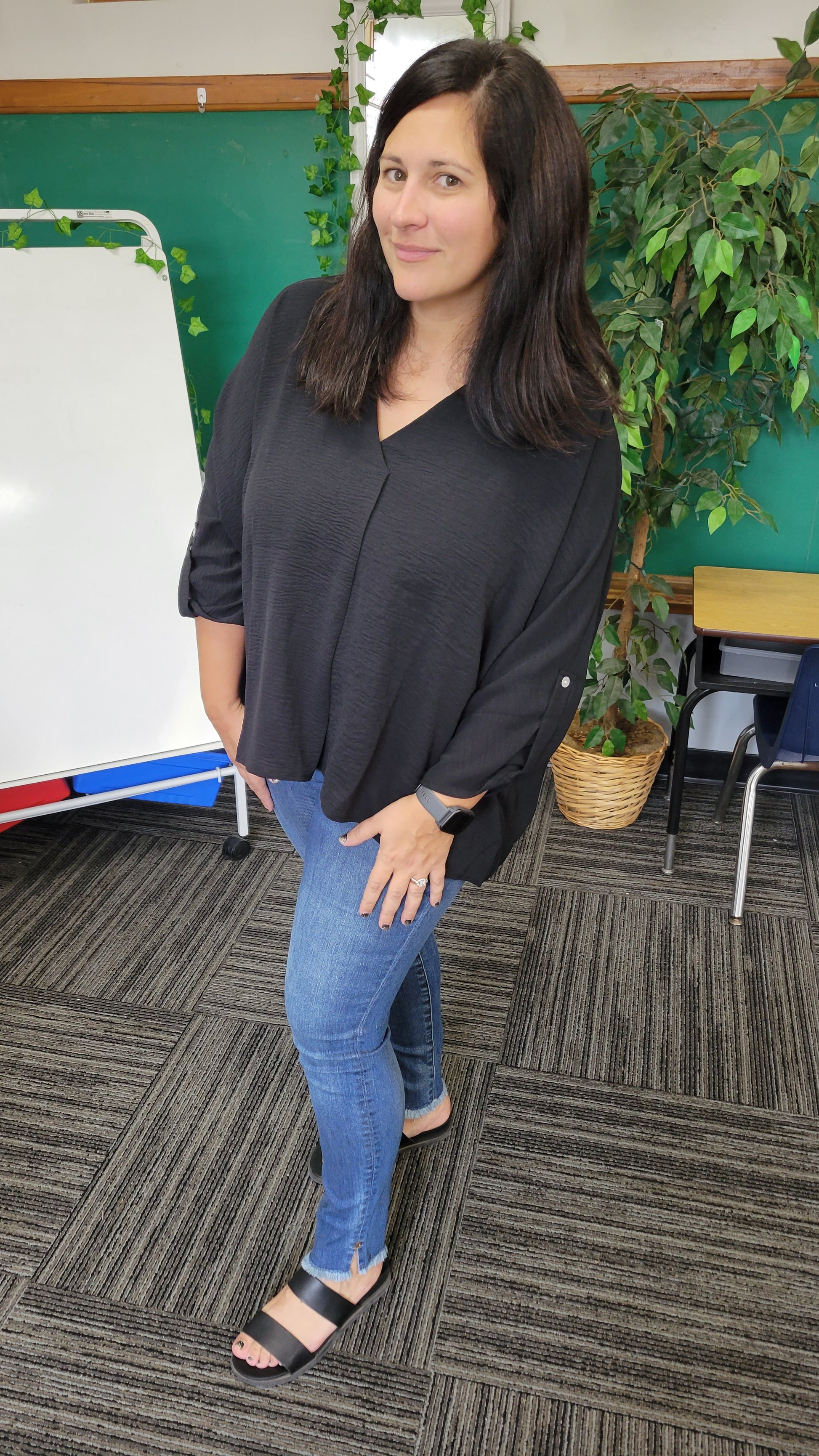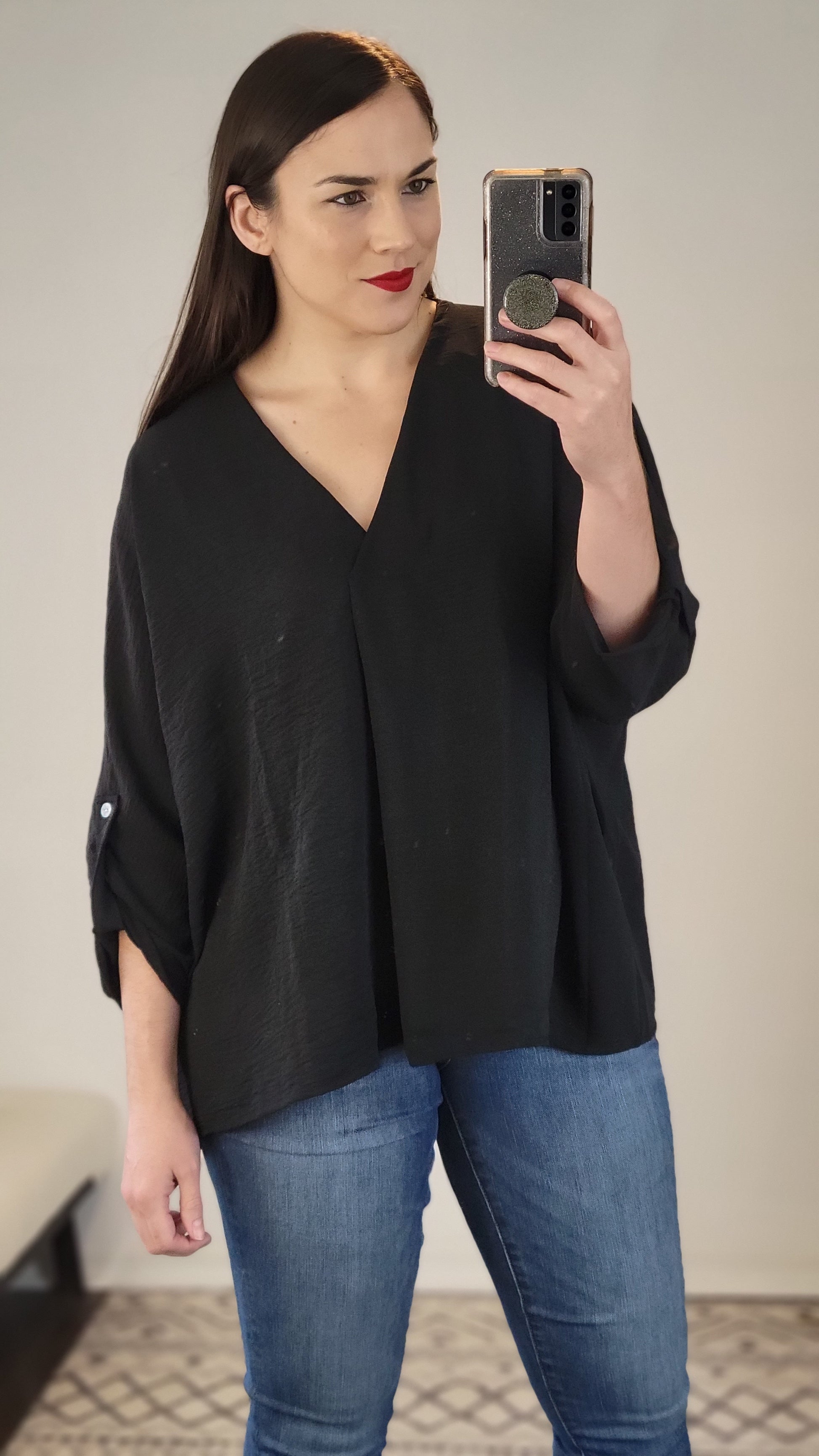 Details: This top is another go to top that is so easy to pair and dress up or down. We are loving the three quarter sleeves with the little button detail. It is lightweight and flowy!