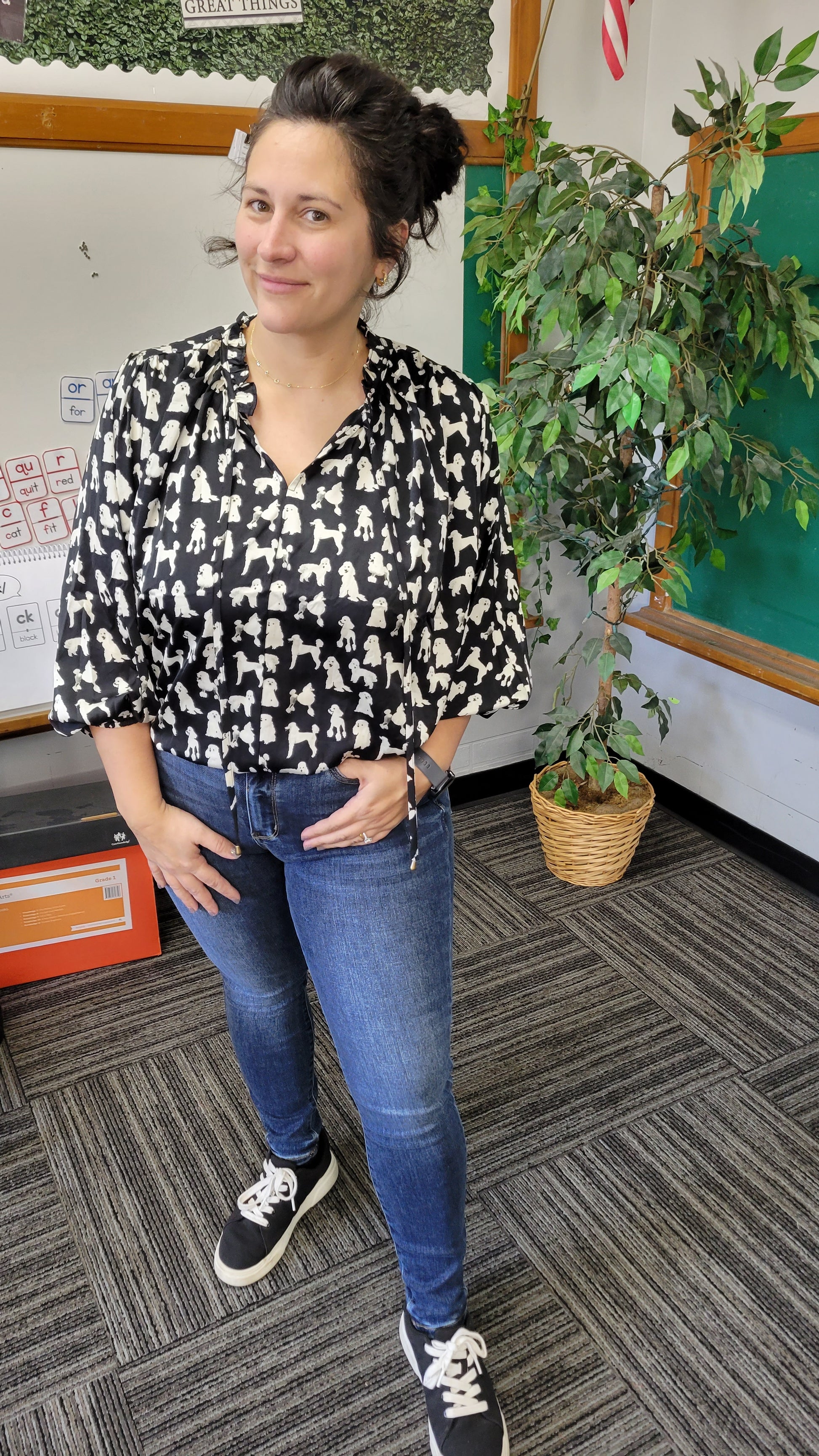 Black/White Poodle ¾ Sleeve Top "Meghan"