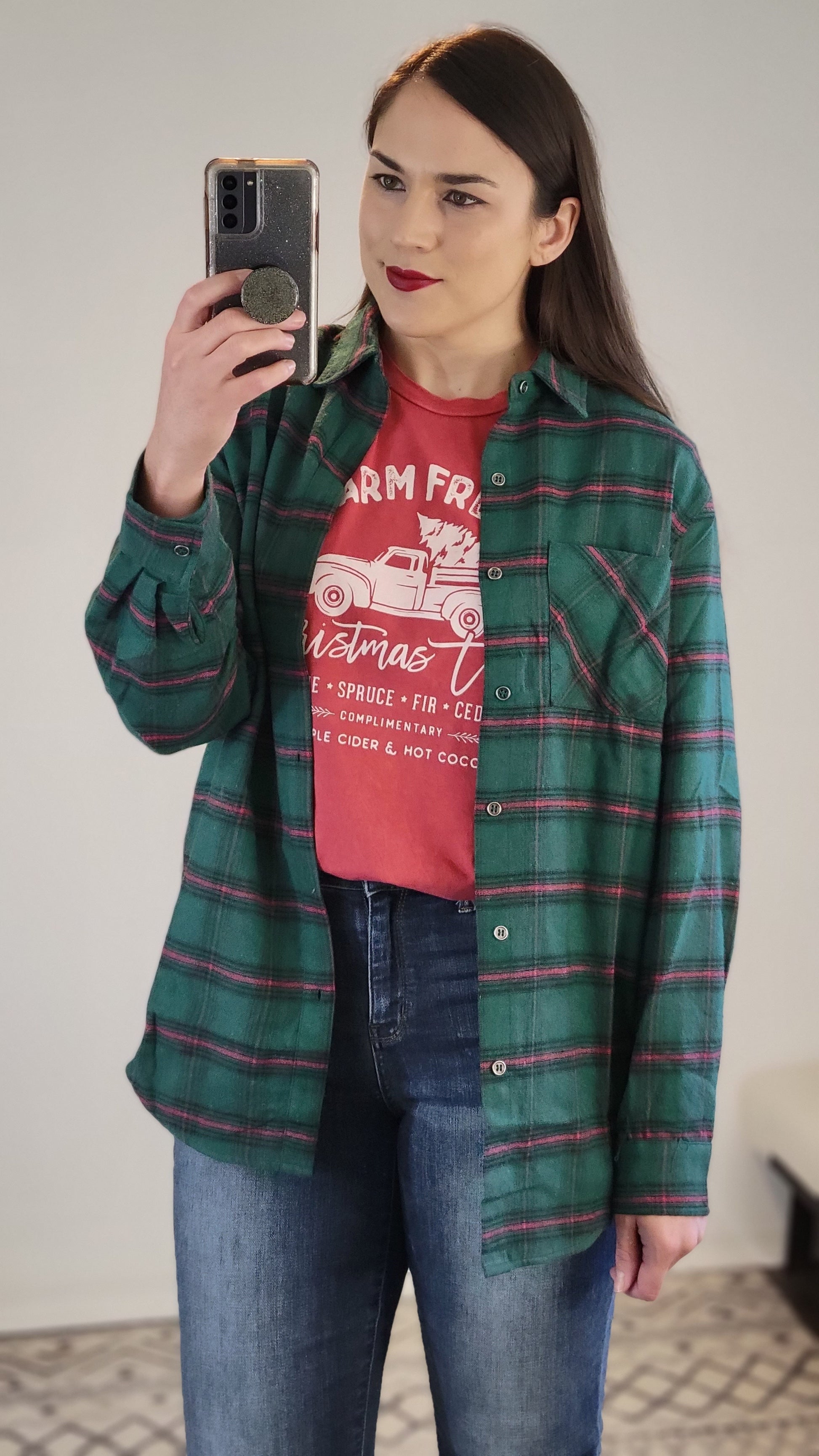 Details: Our favorite oh so soft graphic tee brand made the perfect Christmas tee! Pair it with the new green and red flannel!