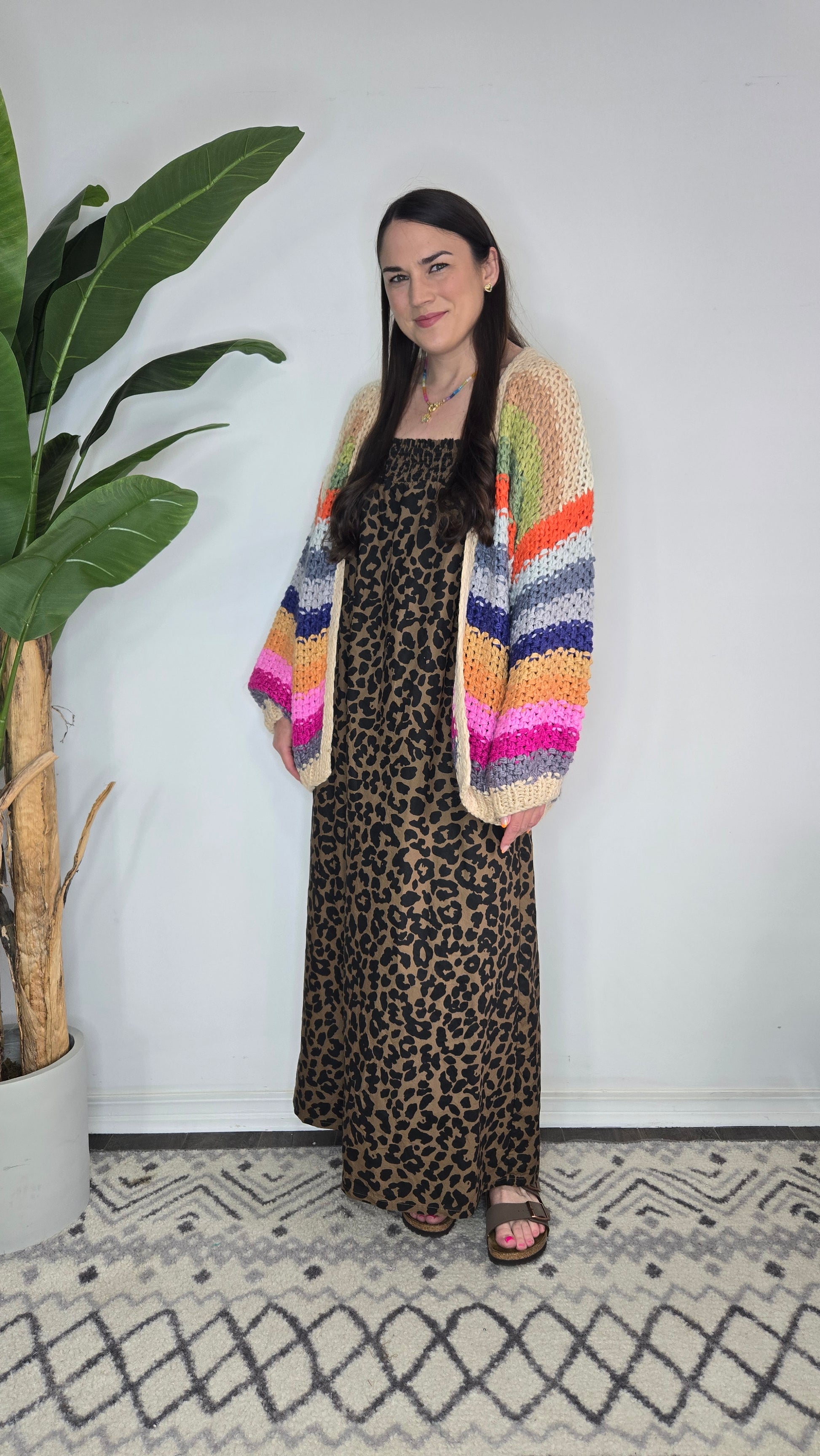 Cream Colorful Stripe Crochet Cardigan "Crissy"