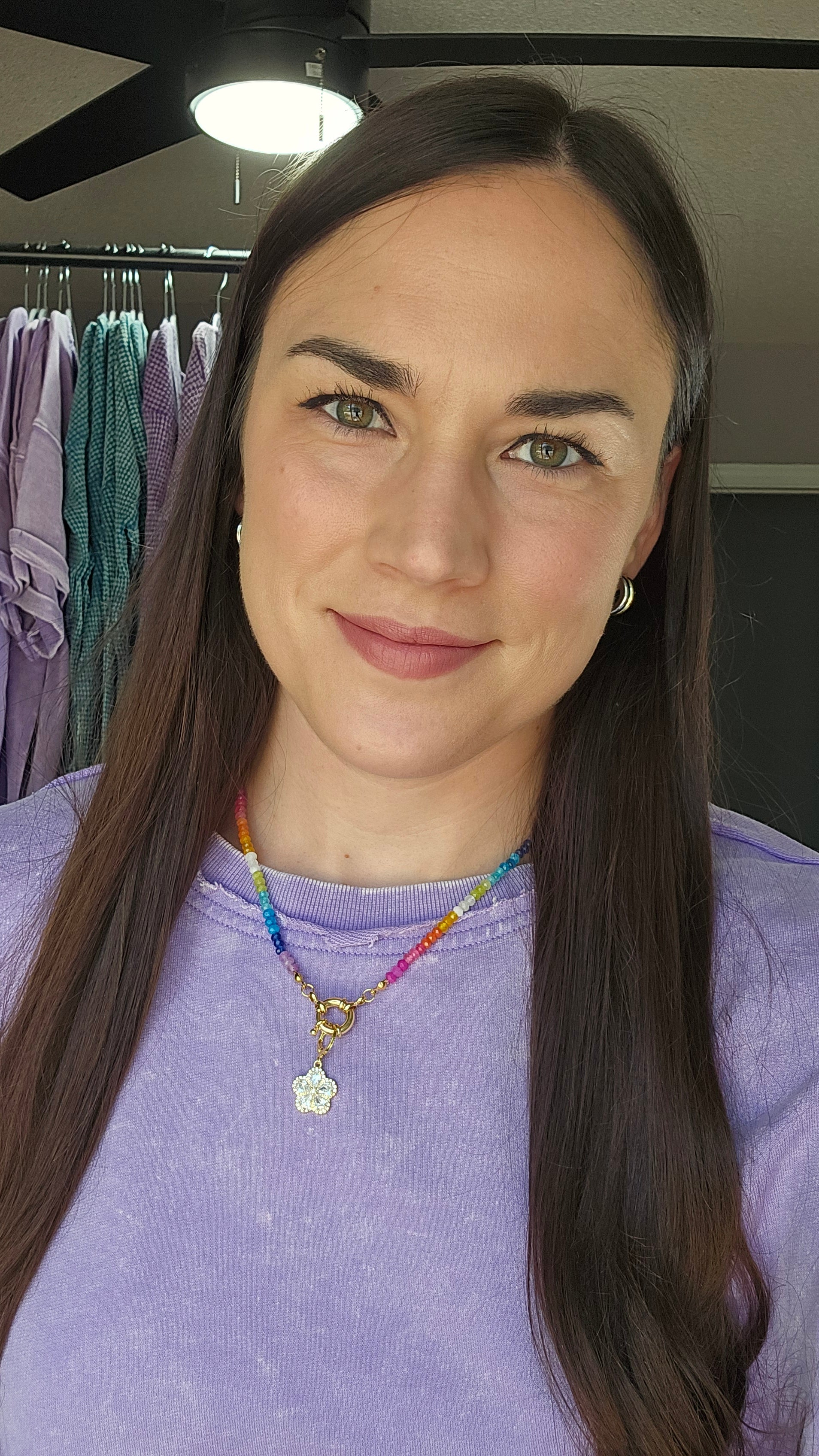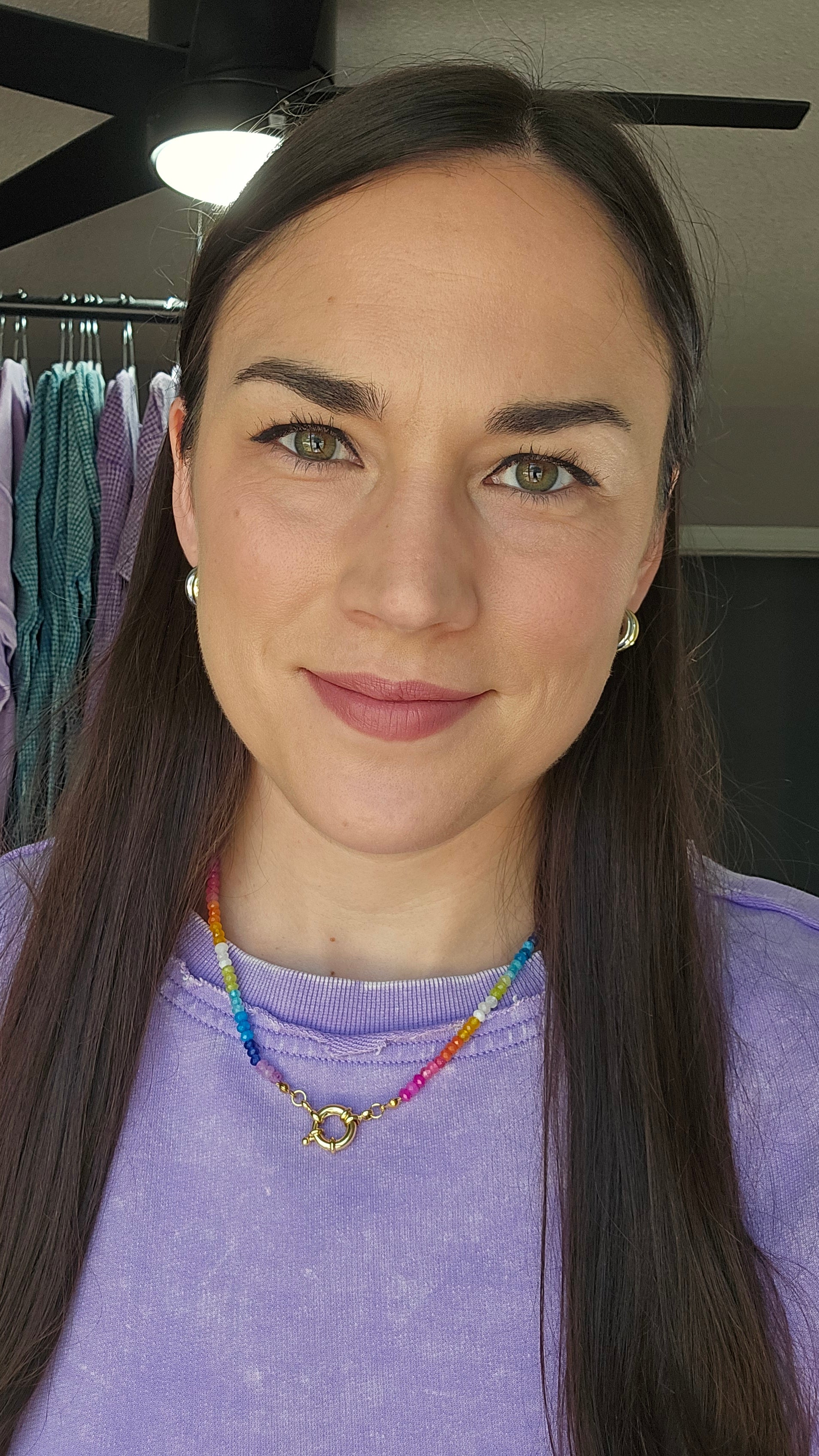 Brighten up your look with this playful rainbow beaded necklace, featuring tiny faceted beads in a cheerful mix of colors. The gold toggle clasp adds a stylish touch and makes it easy to layer with your favorite charms or pendants. Lightweight and full of personality, this piece is perfect for adding a fun pop of color to any outfit—day or night.