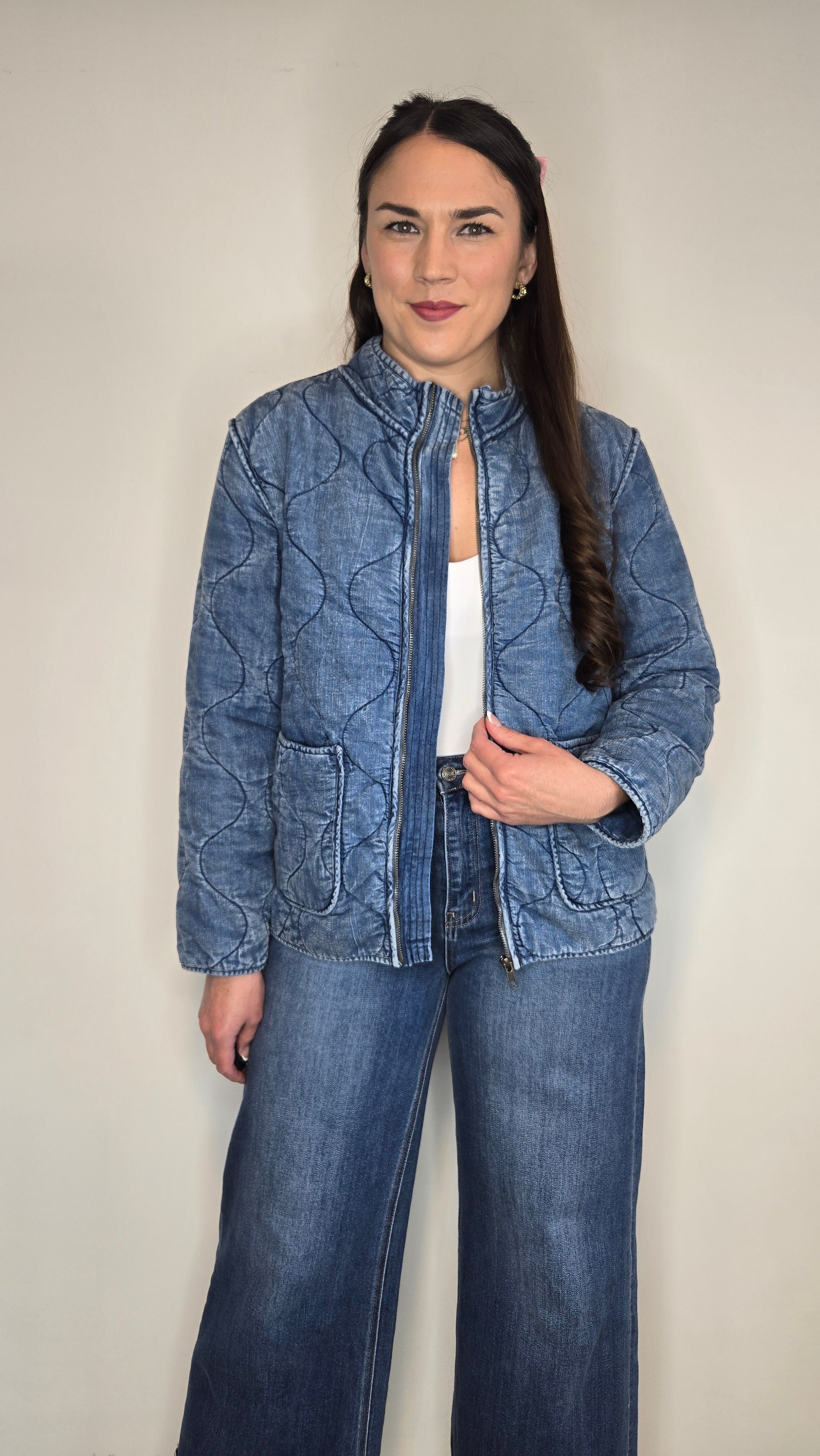 Details: Upgrade your outerwear collection with this trendy quilted denim jacket, featuring an elegant wavy stitch design that adds a modern touch to the timeless denim look. Perfectly blending casual style with lightweight warmth, this jacket is a versatile must-have for layering during chilly mornings or cool evenings.