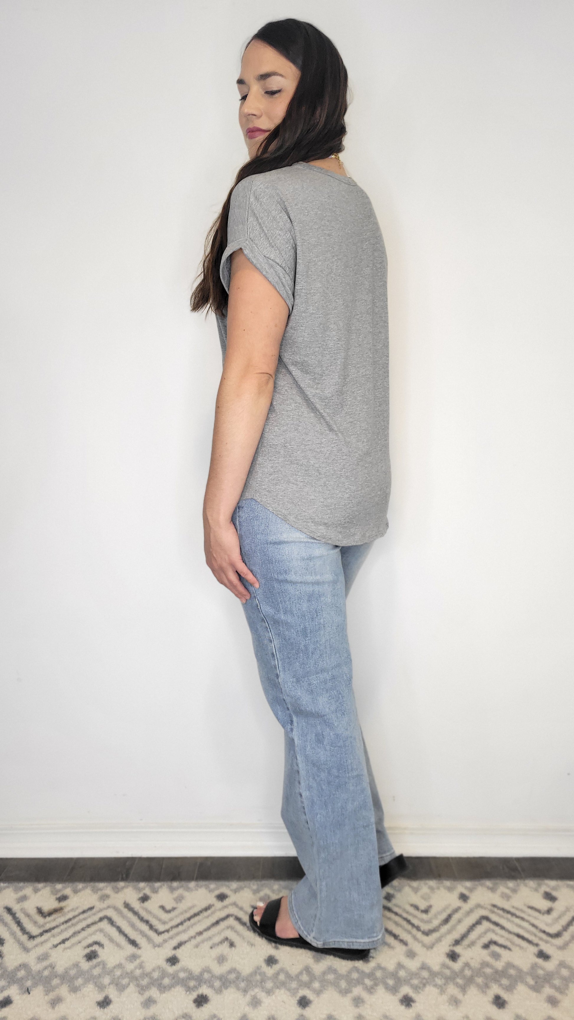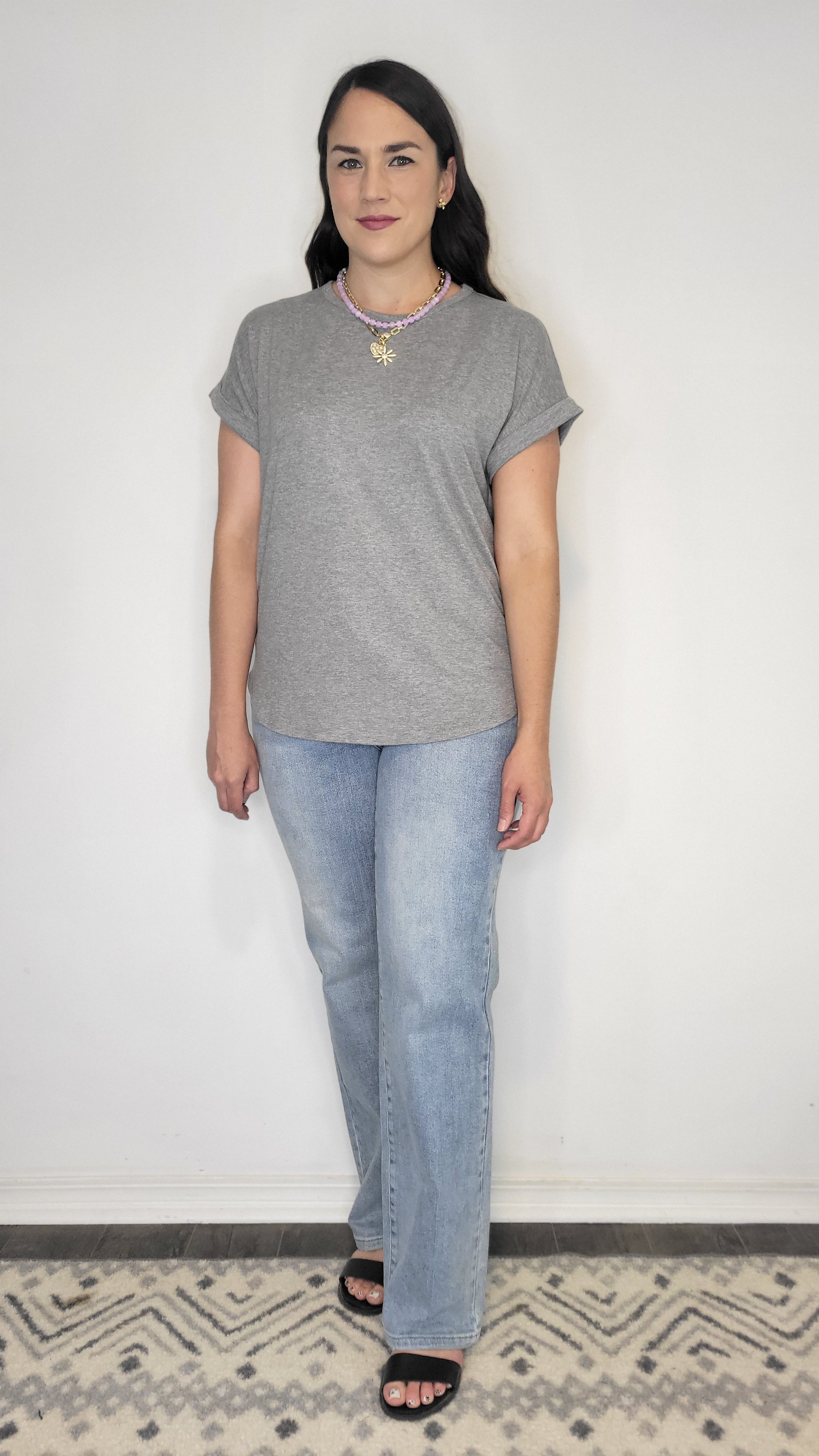 Details: The dolman cuffed sleeves make this basic top so chic, and it is such a buttery SOFT and stretchy material! Quality and not see though. Relaxed flowy fit with a modest round neckline and hem that swoops. These are a great not so basic tee for dressing up or dressing down.