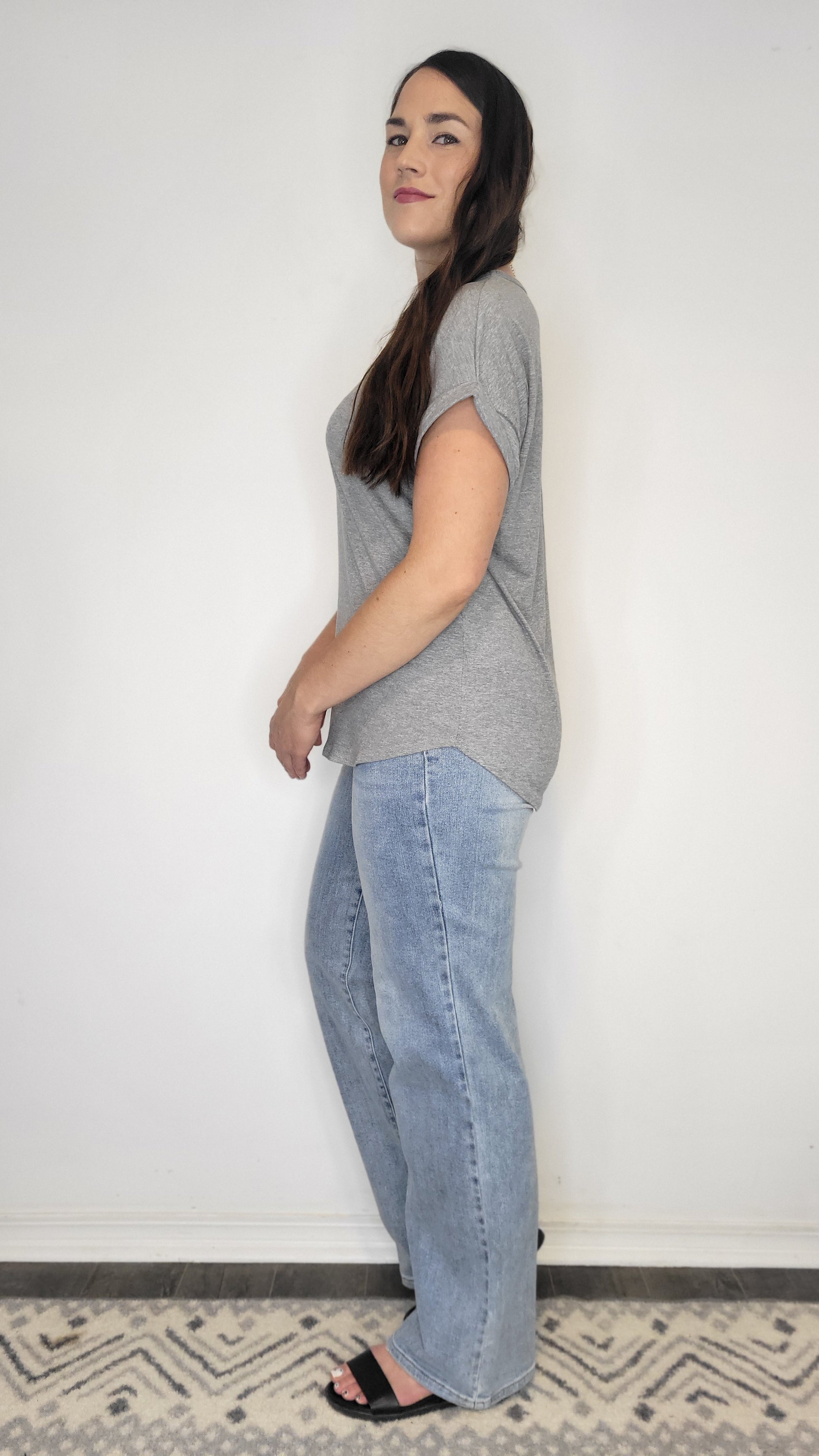 Grey Basic Dolman Cuffed Sleeve Top “Ryan” (M)