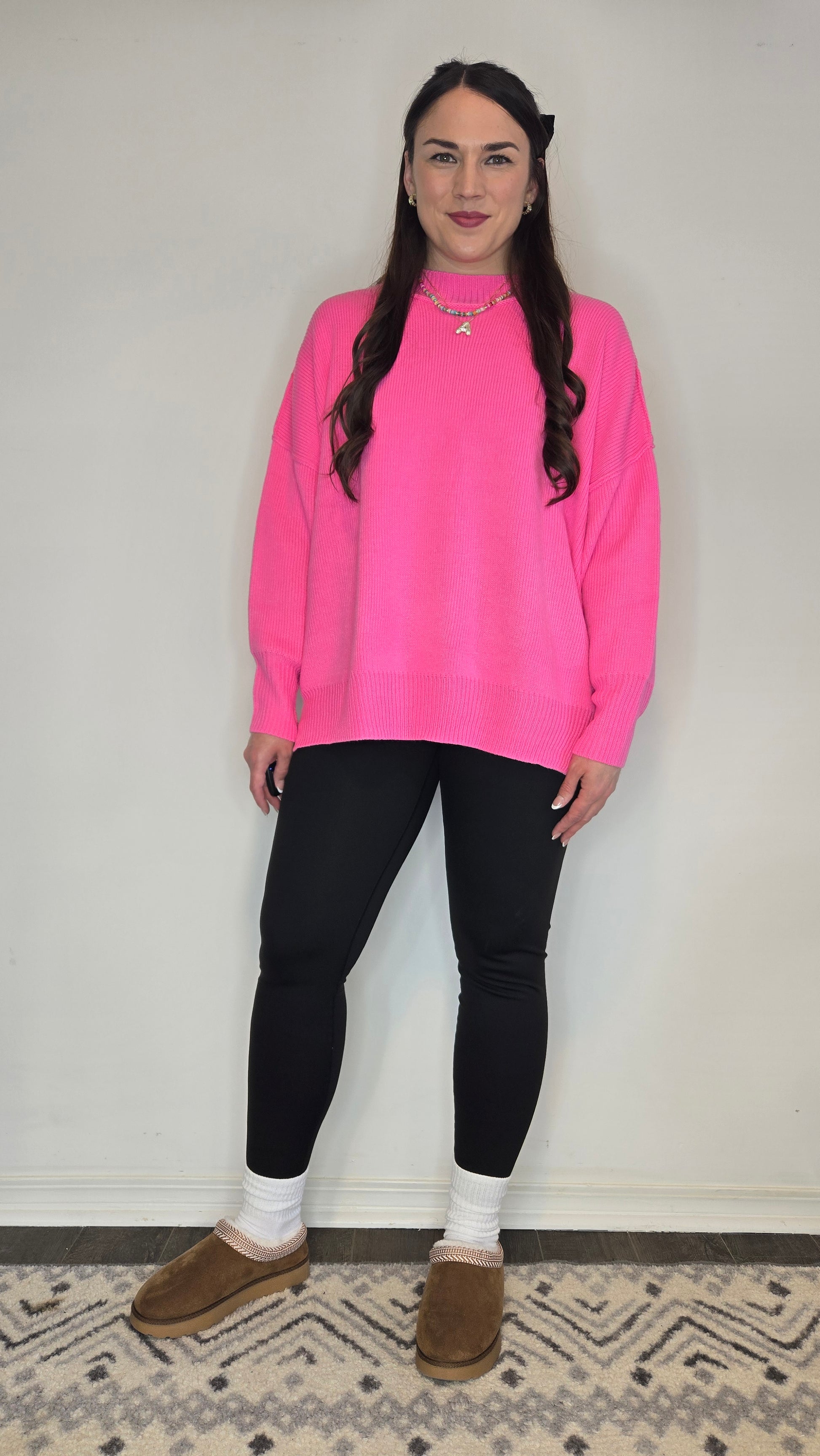Hot Pink Oversize Essential Knit Sweater "Tori"