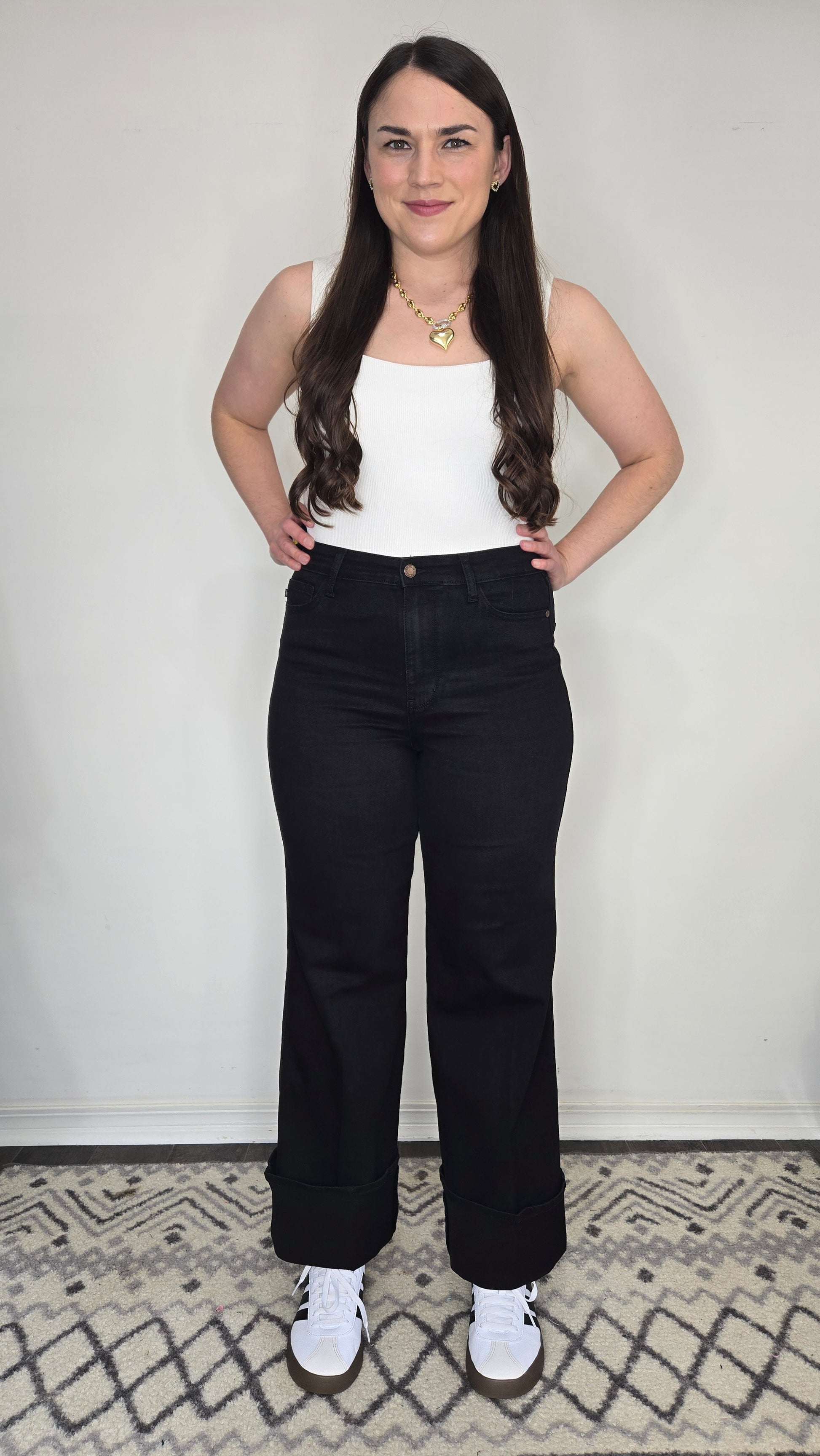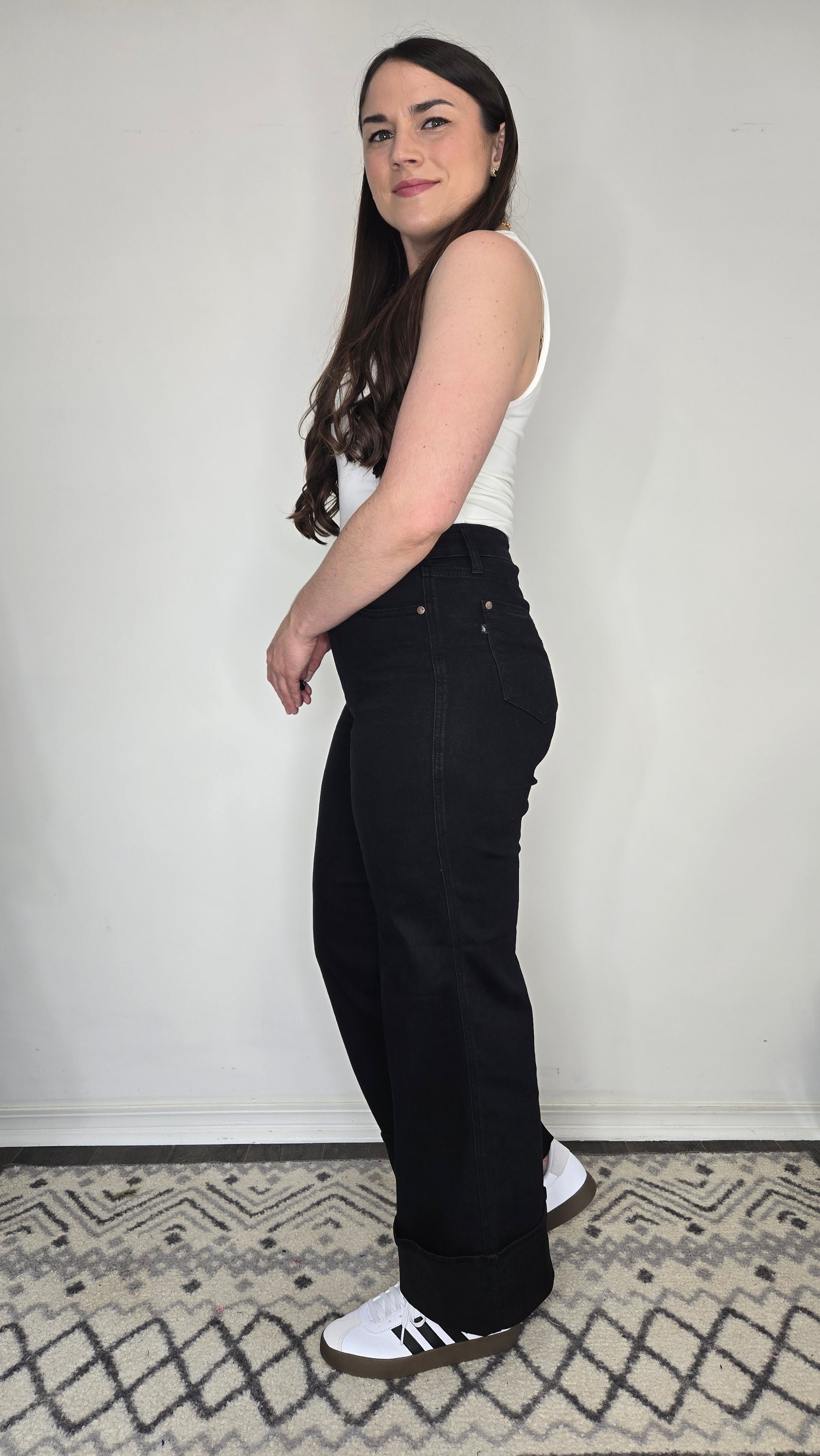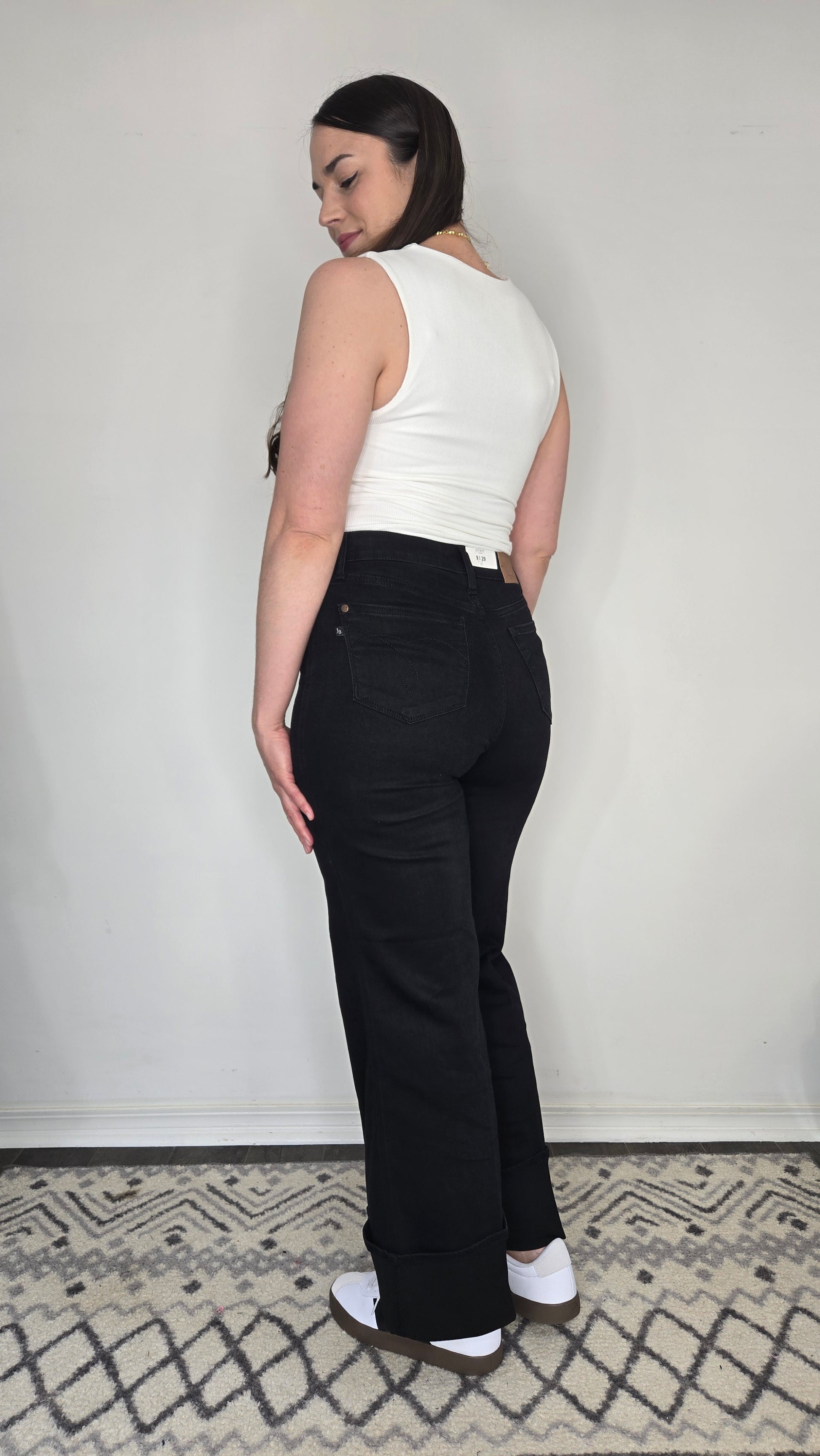 Judy Blue Black Retro Wide Leg High Rise Jeans With Cuff "Taylor"