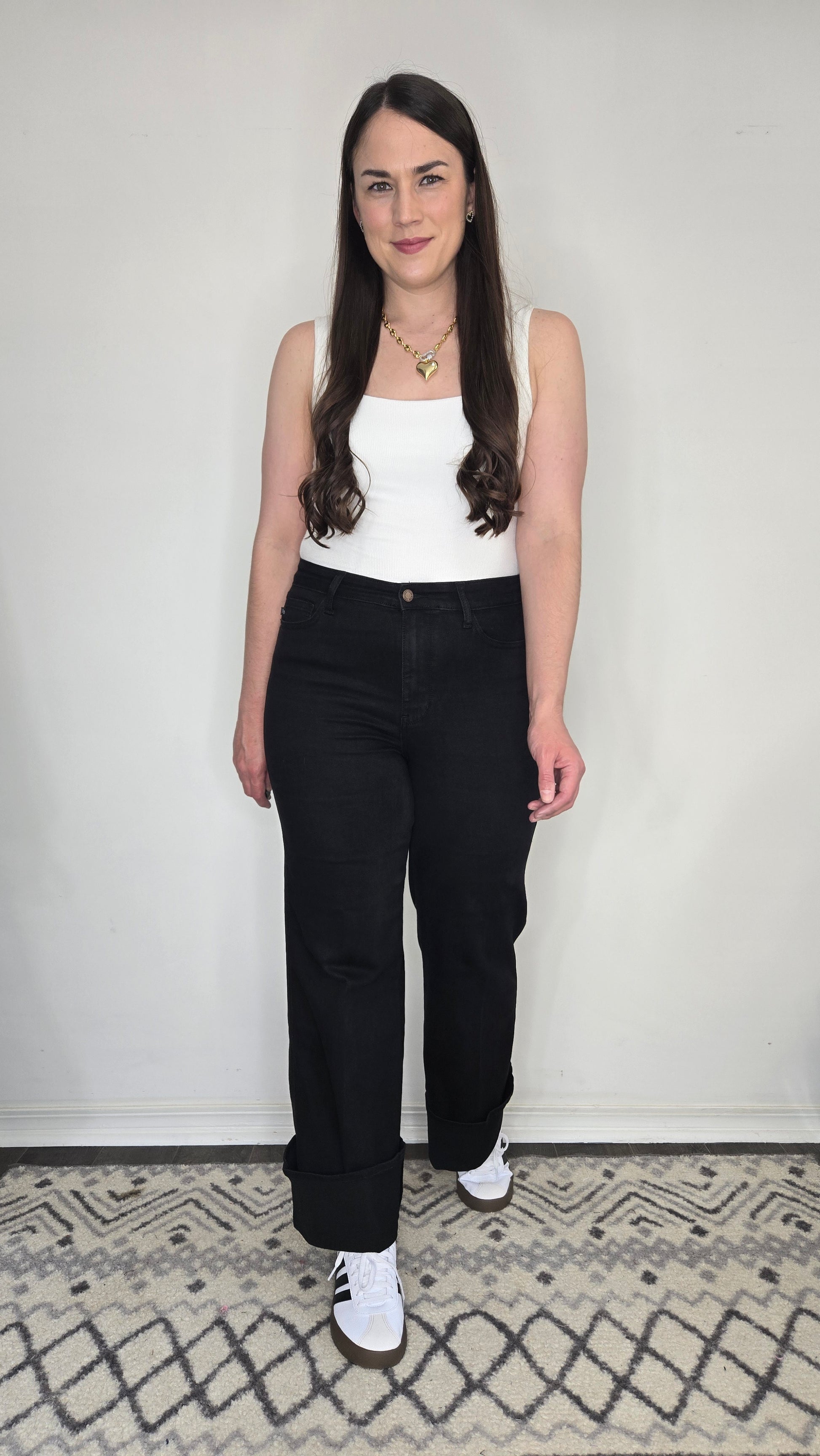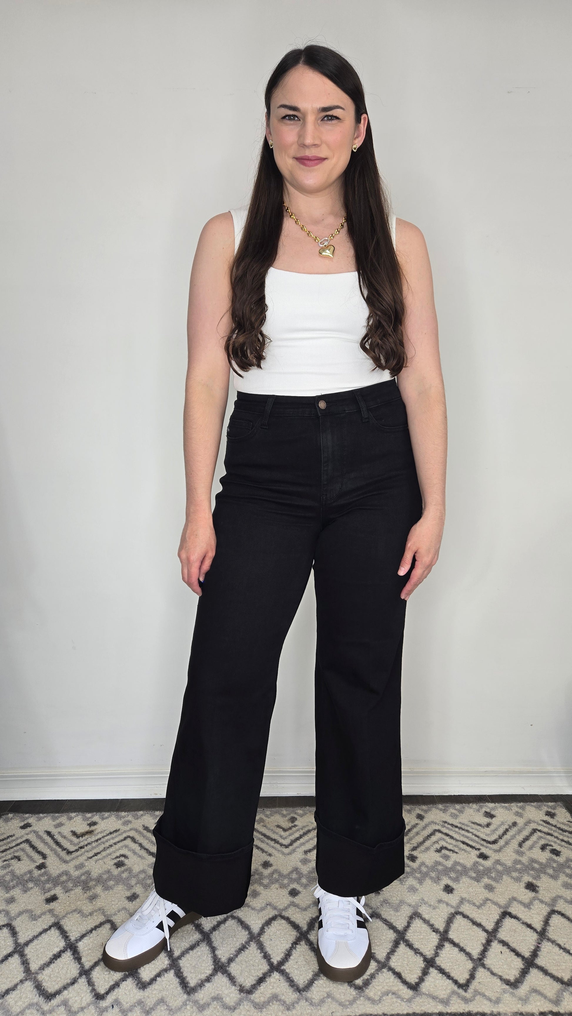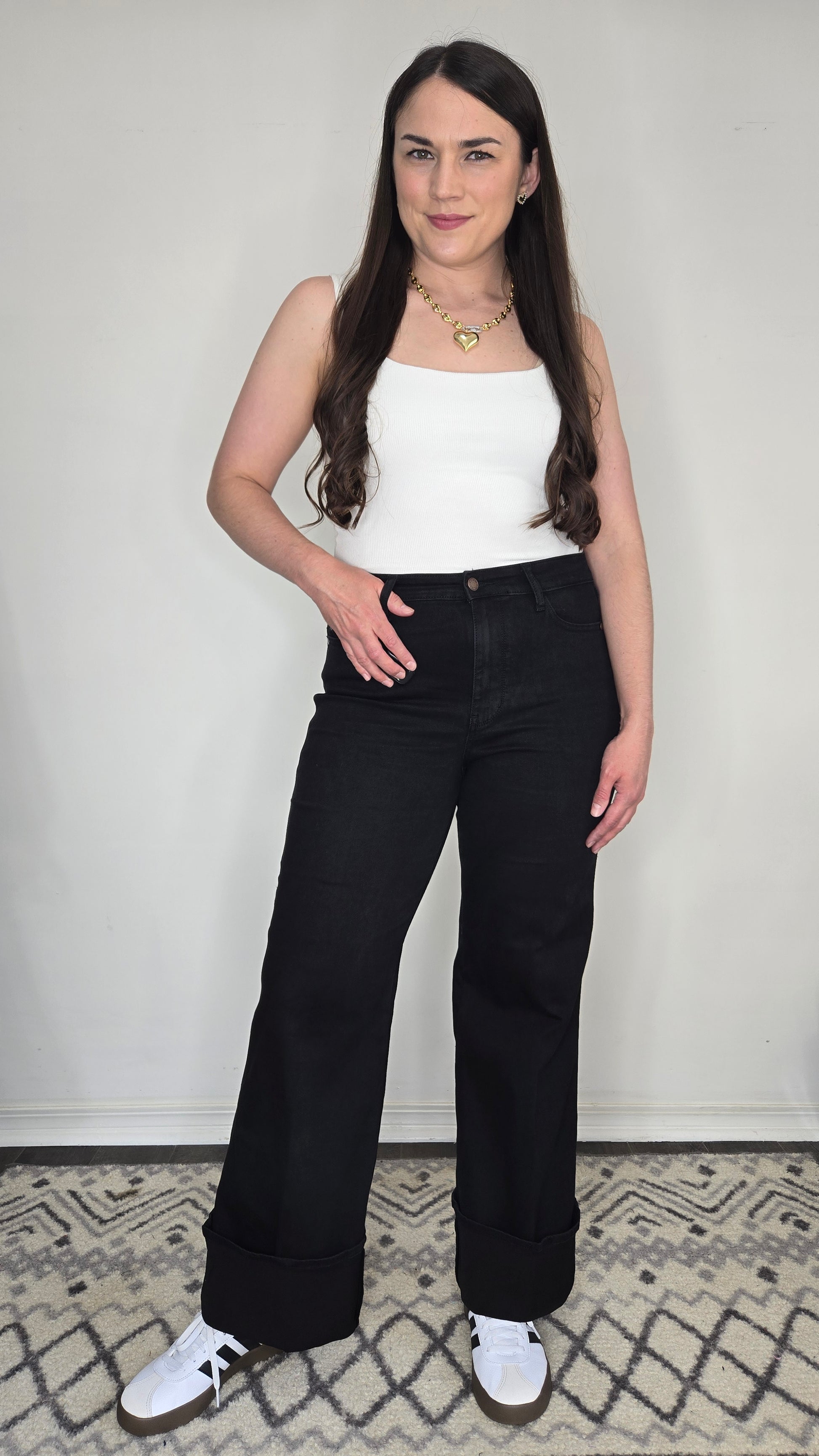 Judy Blue Black Retro Wide Leg High Rise Jeans With Cuff "Taylor"