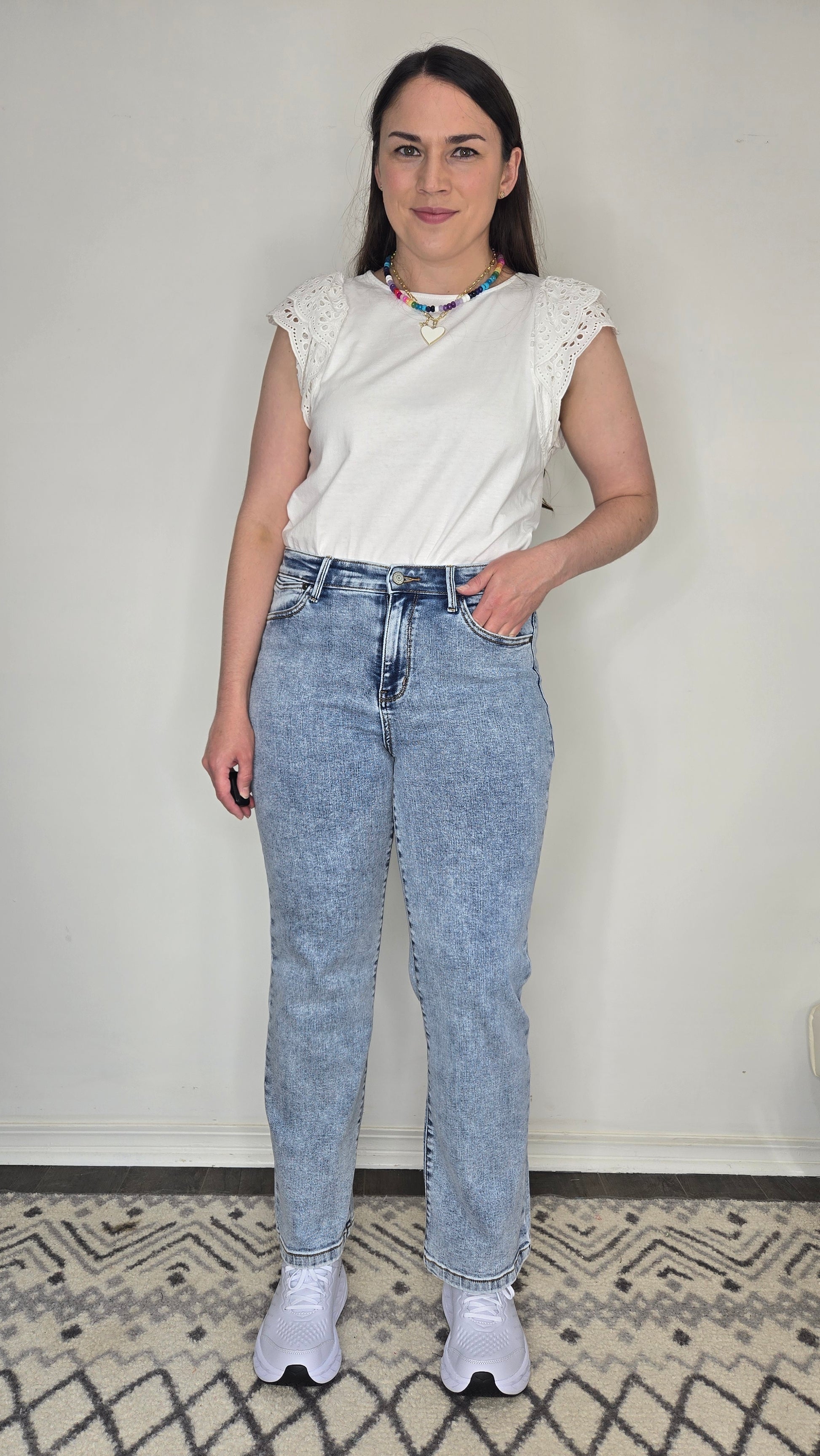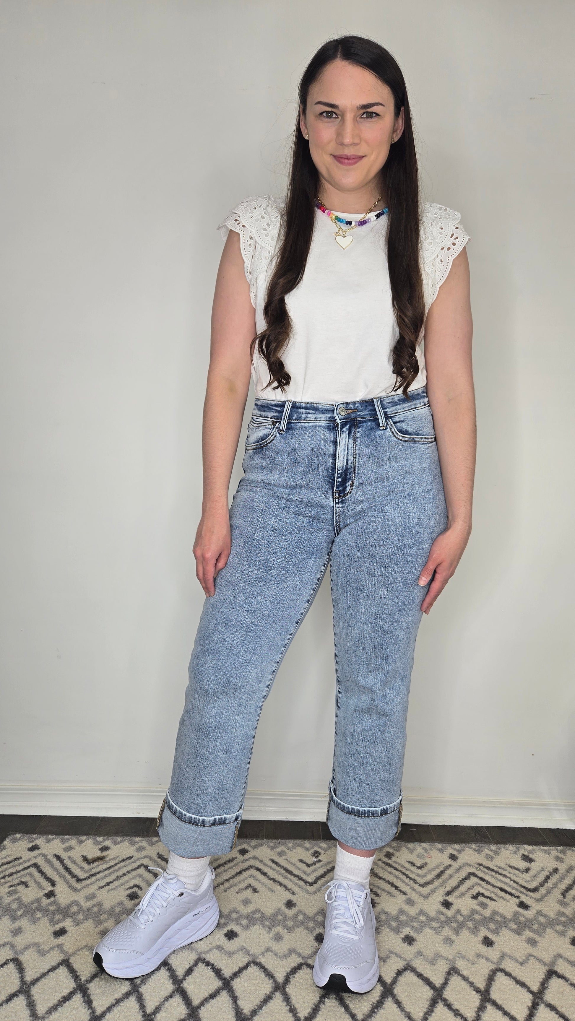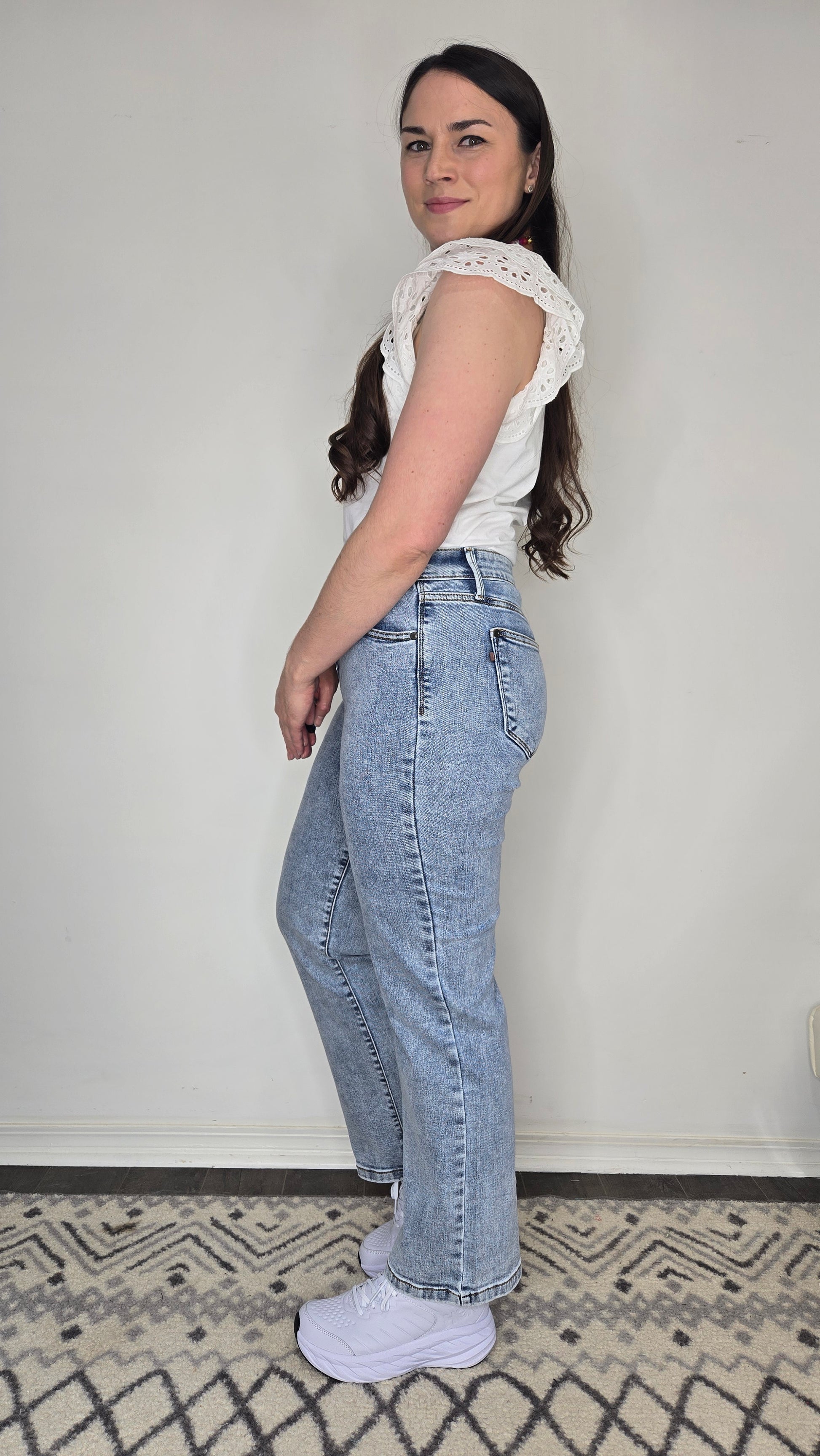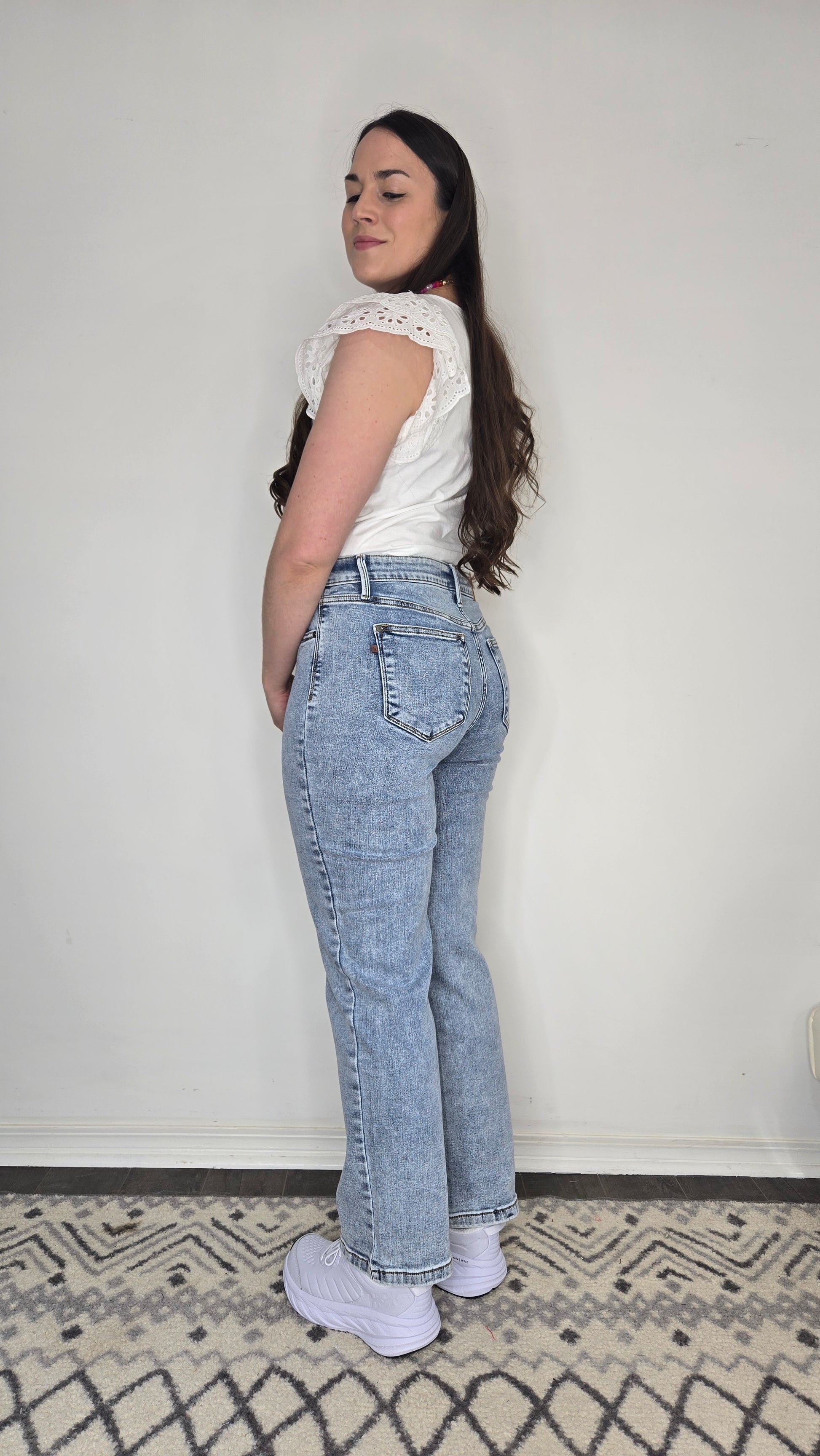Description: Your new go-to jeans just got even more versatile. These Judy Blue Jeans feature a flattering 10 3/4" High-Rise fit and a 30" Inseam—perfect for petite girls who want a full-length style, or taller girls who love that on-trend ankle cut. The straight leg silhouette makes them easy to cuff for a cropped, casual vibe without adding bulk. Made with Judy Blue’s signature stretch denim, they’re ultra-comfy and easy to dress up or down. From sneakers to sandals to boots—these jeans go with everything.