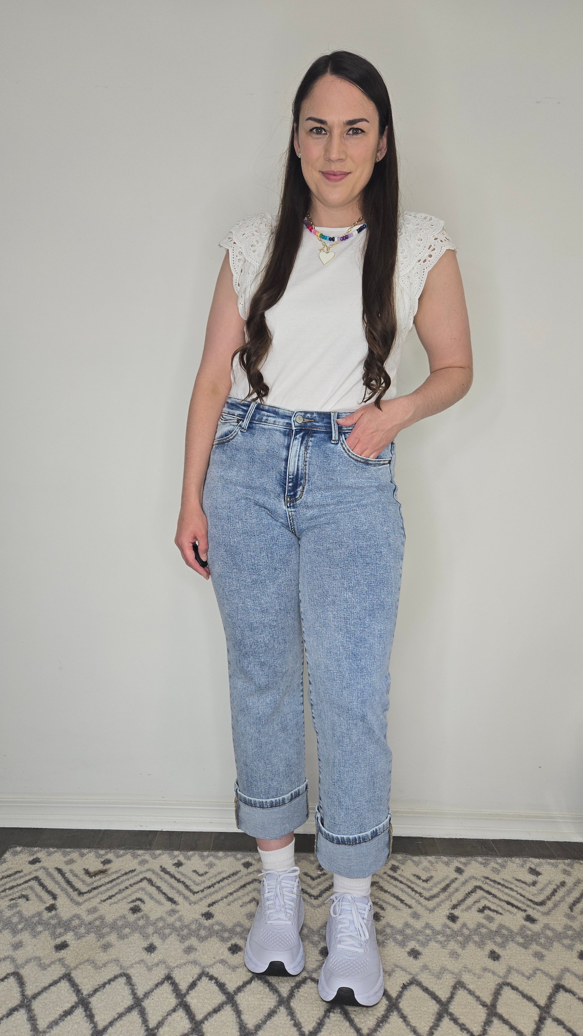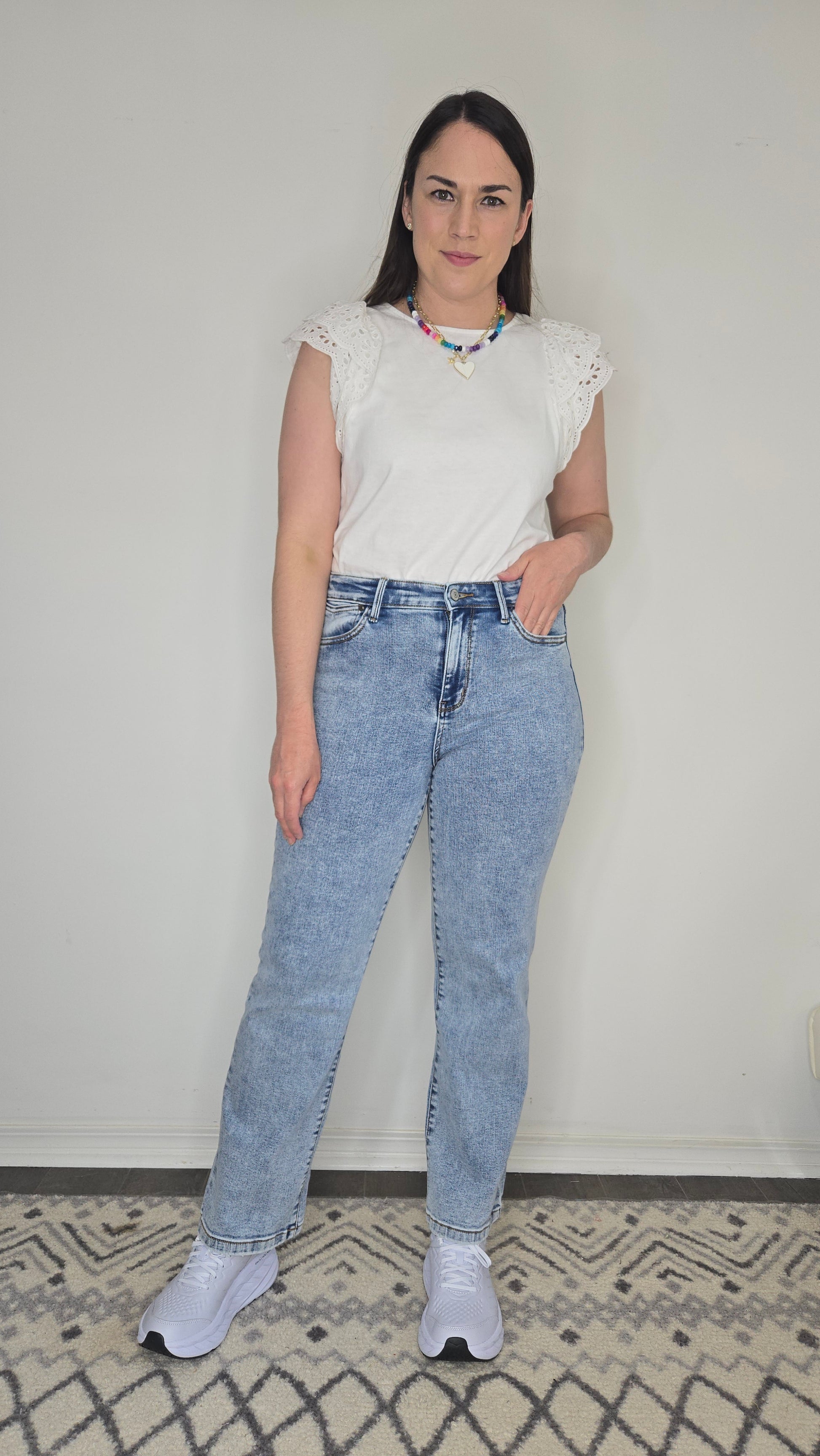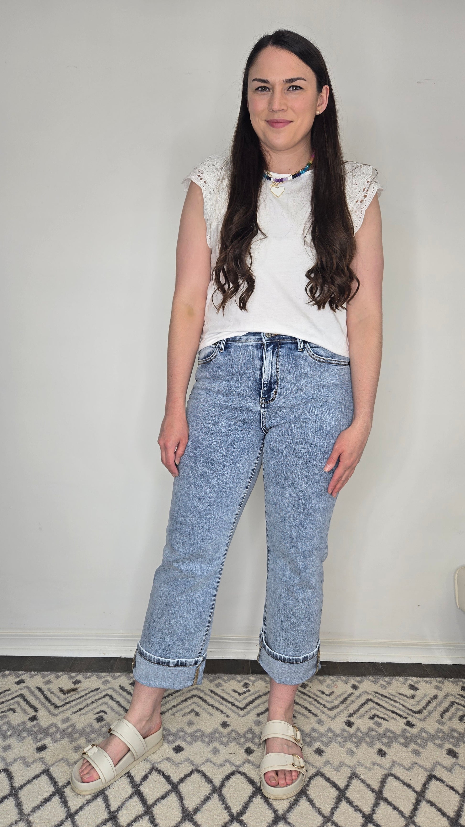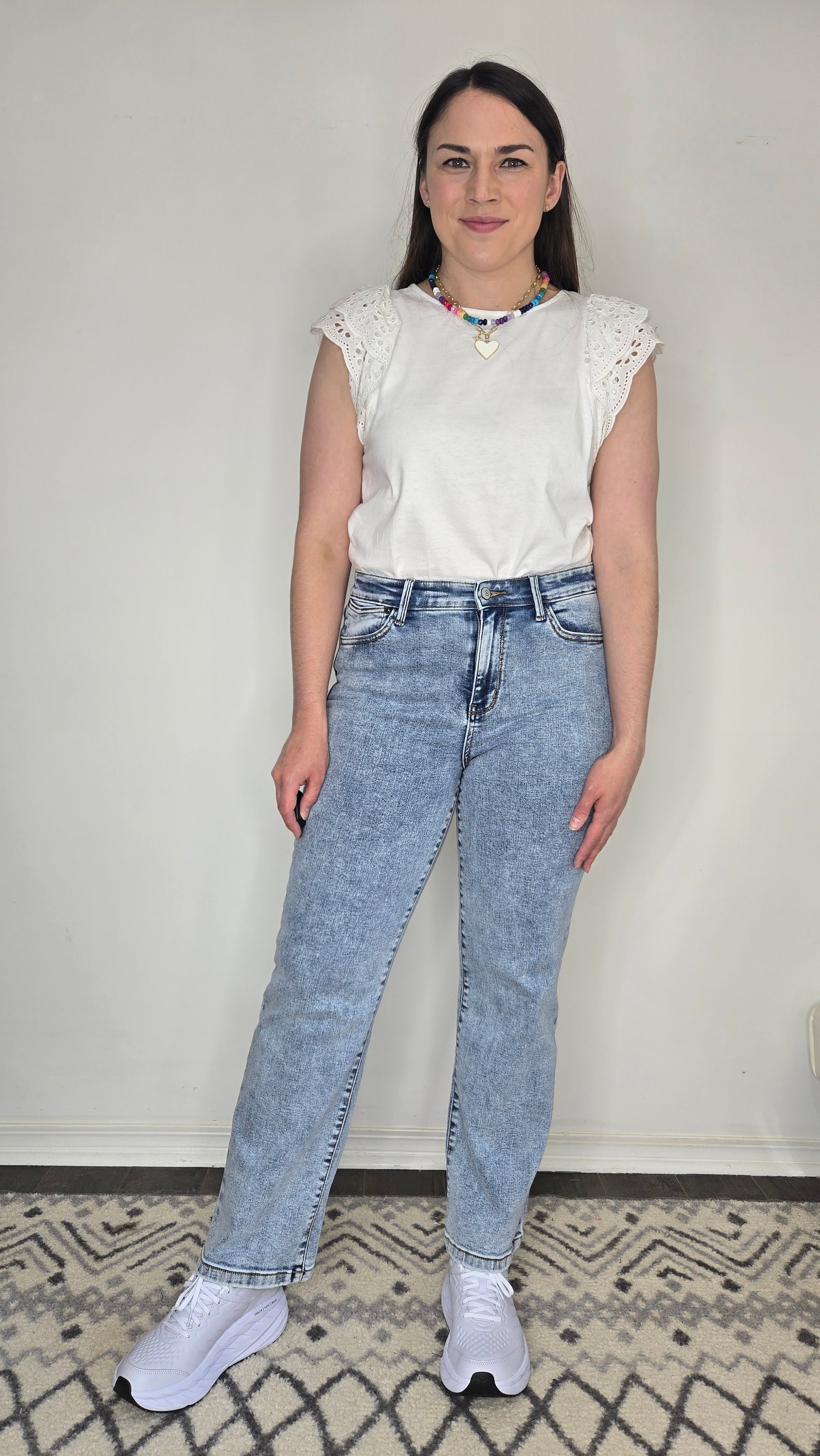 Description: Your new go-to jeans just got even more versatile. These Judy Blue Jeans feature a flattering 10 3/4" High-Rise fit and a 30" Inseam—perfect for petite girls who want a full-length style, or taller girls who love that on-trend ankle cut. The straight leg silhouette makes them easy to cuff for a cropped, casual vibe without adding bulk. Made with Judy Blue’s signature stretch denim, they’re ultra-comfy and easy to dress up or down. From sneakers to sandals to boots—these jeans go with everything.