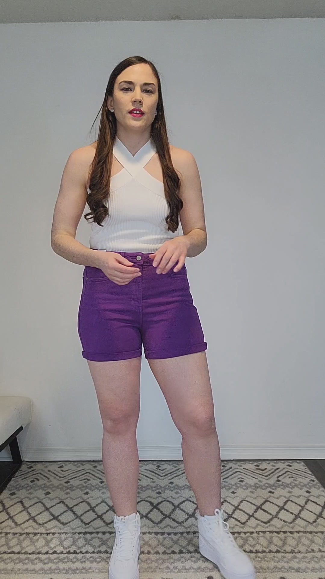 Details: This purple color is too good to be true! You need this garment dyed denim piece! Stretchy and comfortable as all Judy Blues are! We are loving these new Tummy Control shorts! 11”High Rise and 4” Cuffed/6” Uncuffed Inseam.