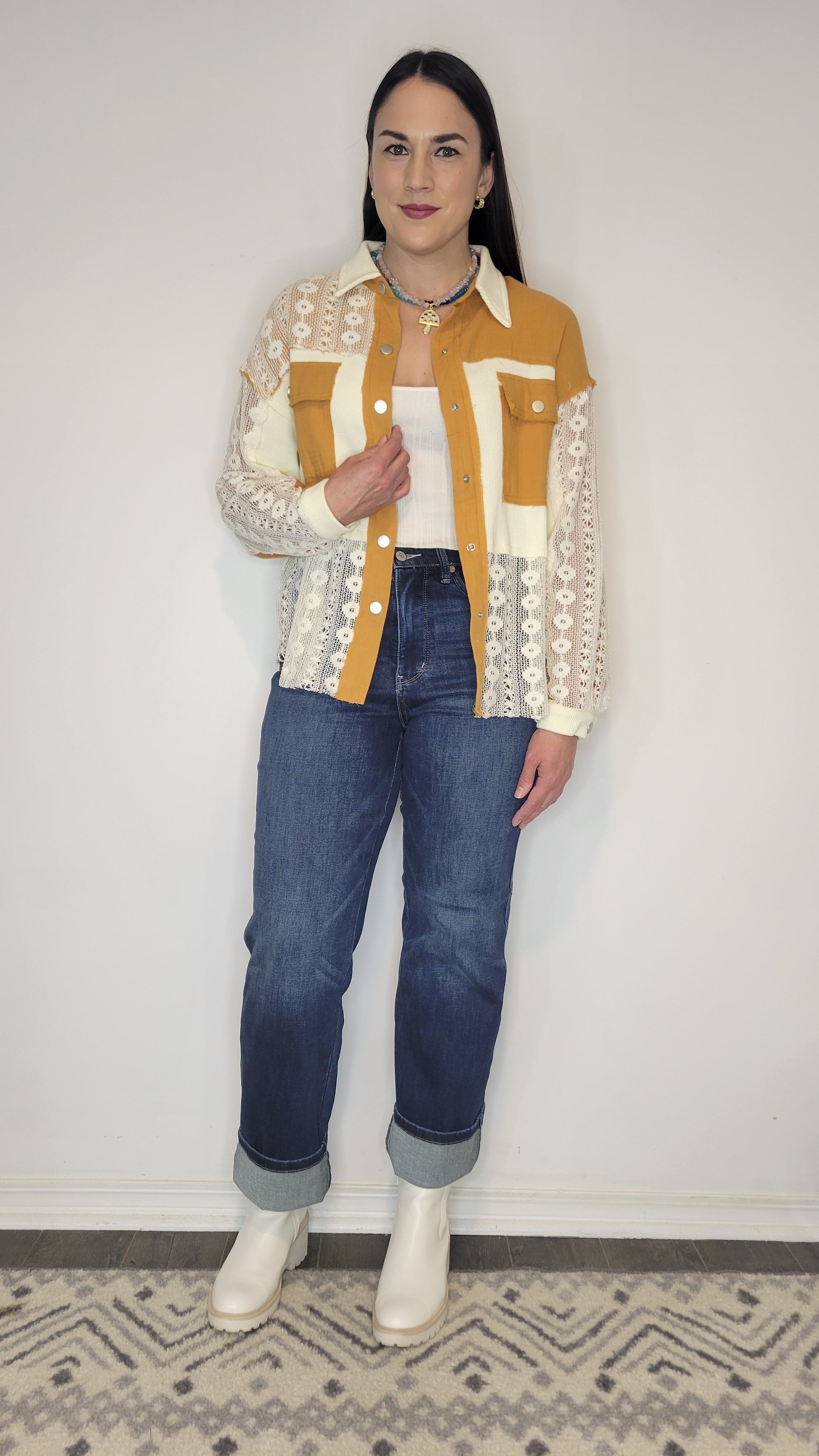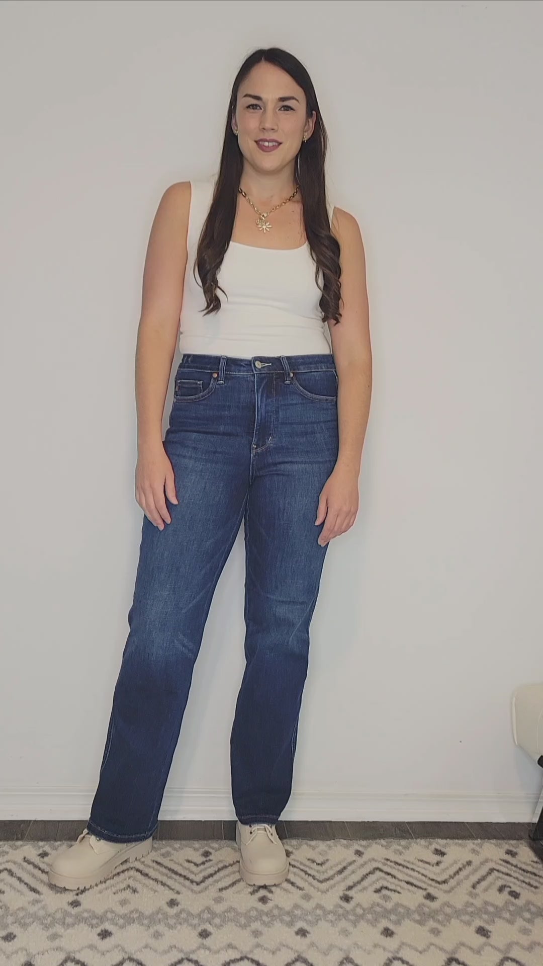 Details: You are going to love these perfect Judy Blue classic straight leg jeans! The dark wash is gorgeous! These high rise Tummy Control jeans are soft, stretchy, and comfortable but still have hold. Light/medium weight material. We are loving the whisker detailing, slimming contouring, and only slight destruction. Sewn hem. You can cuff them if you are shorter. You are going to need these! 11” High Rise and 32” Inseam.