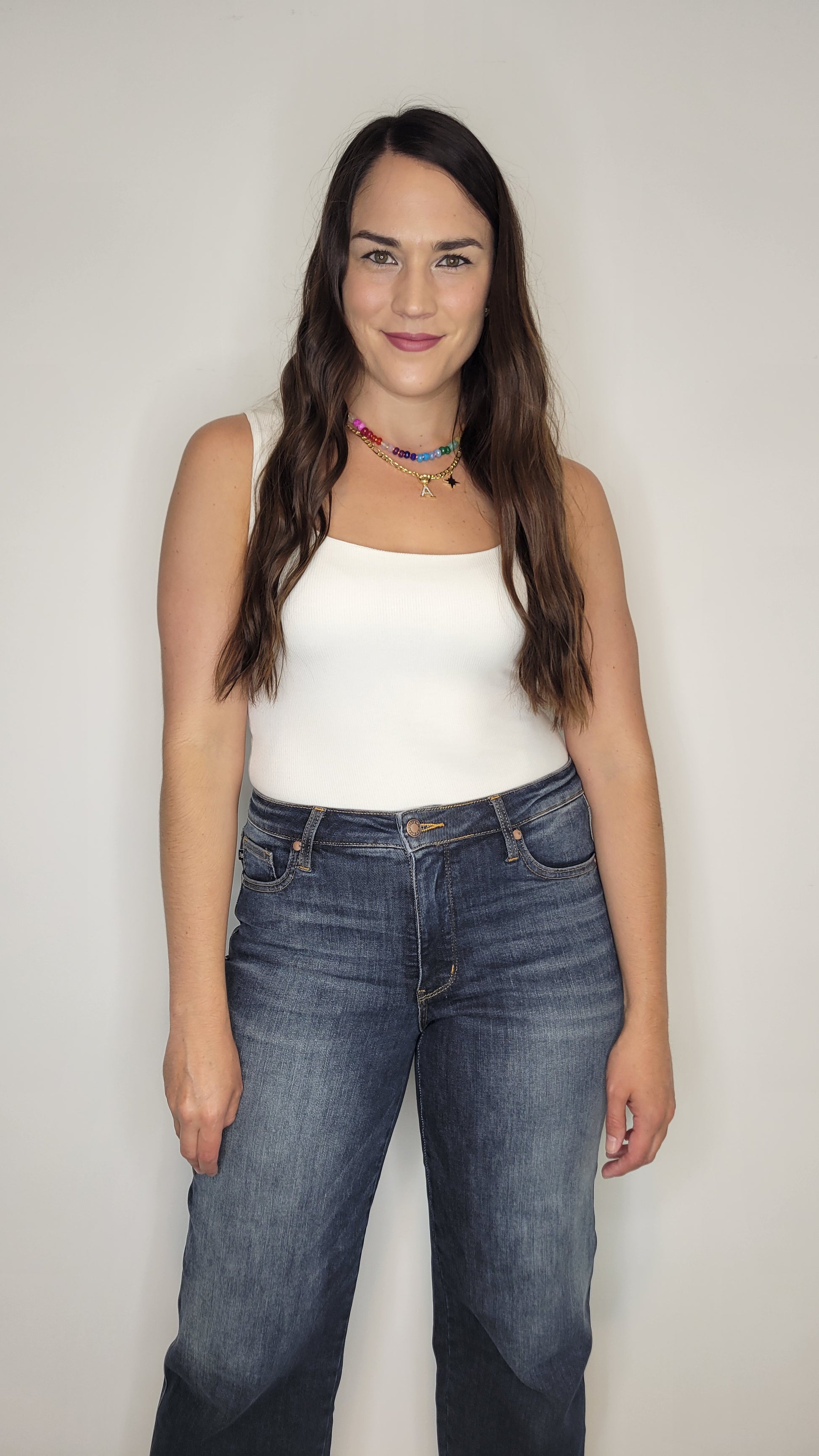 Judy Blue Tummy Control Mid Rise Dark Wash Cropped Wide Leg “Maisie”