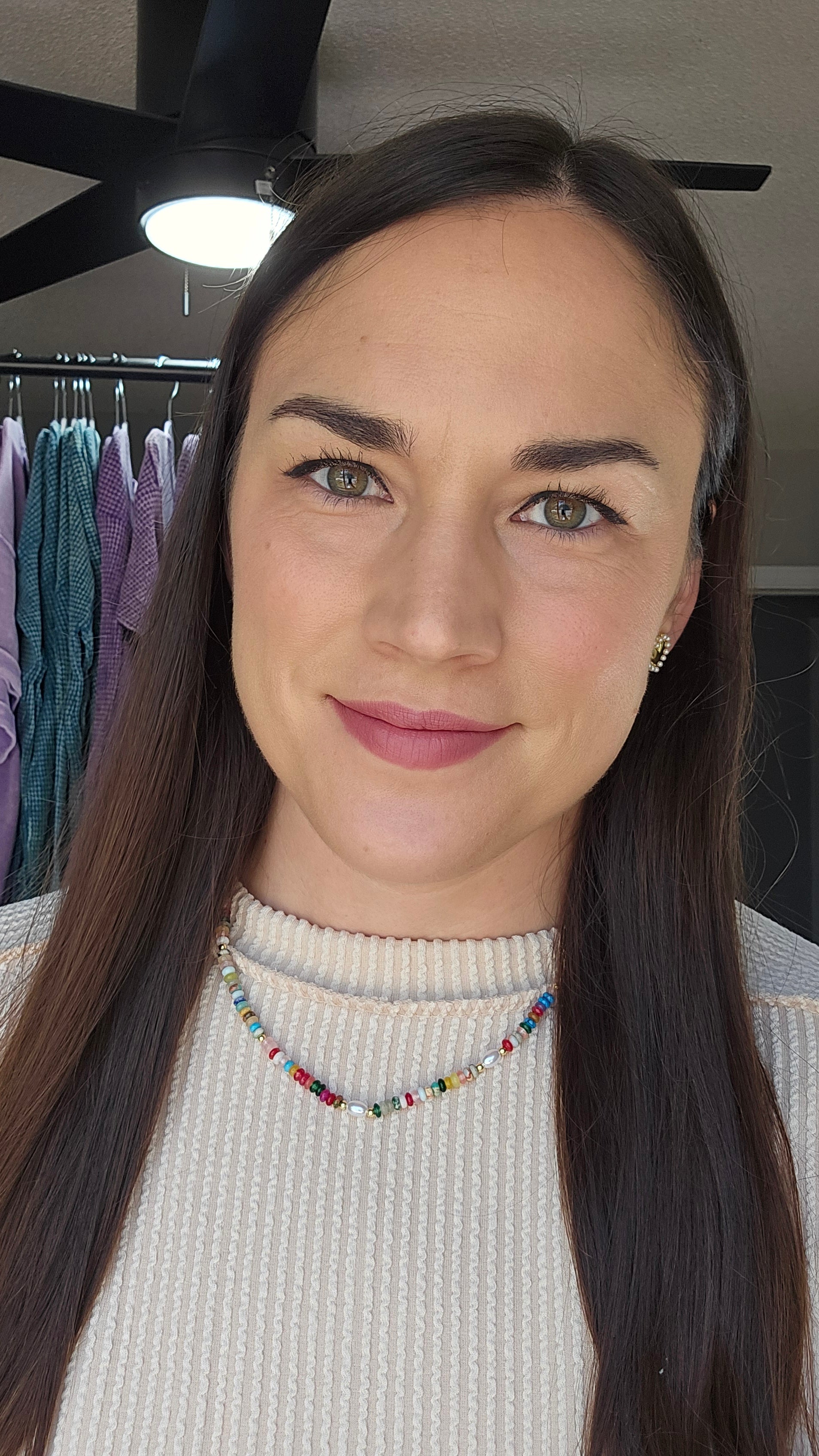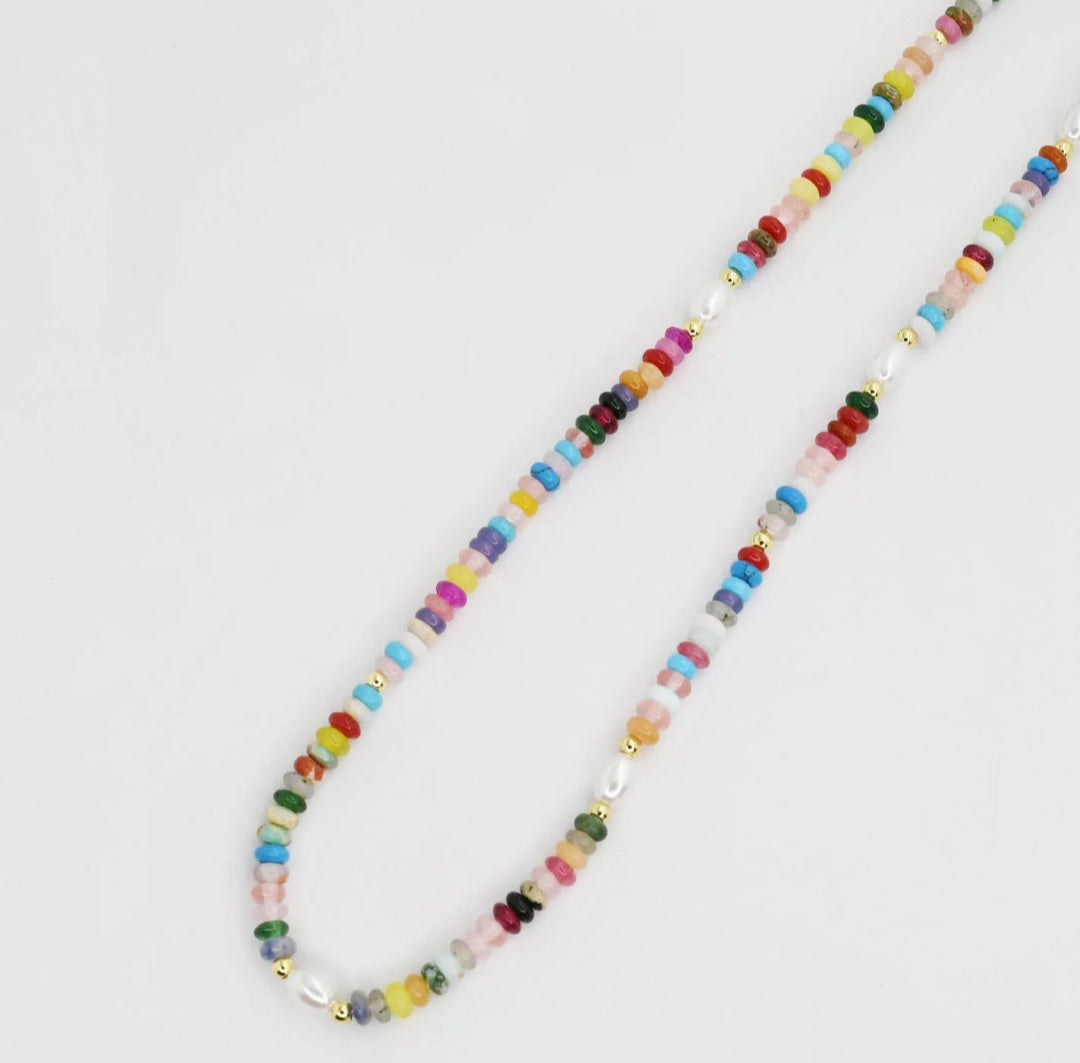 Add a burst of color to your look with this vibrant beaded necklace. Featuring a playful mix of multicolor beads accented with tiny gold details, this piece is perfect for layering or wearing on its own. Each necklace has a unique pattern, giving it a one-of-a-kind charm. Lightweight and fun, it's an easy way to brighten up any outfit—day or night.