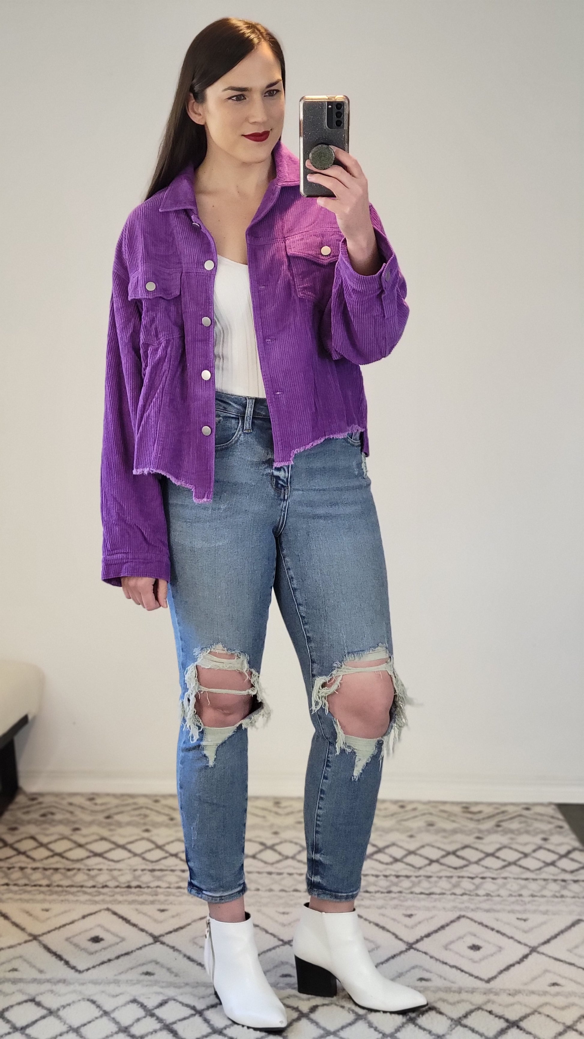 Purple Oversize Corduroy Button Up Jacket "Alana"
